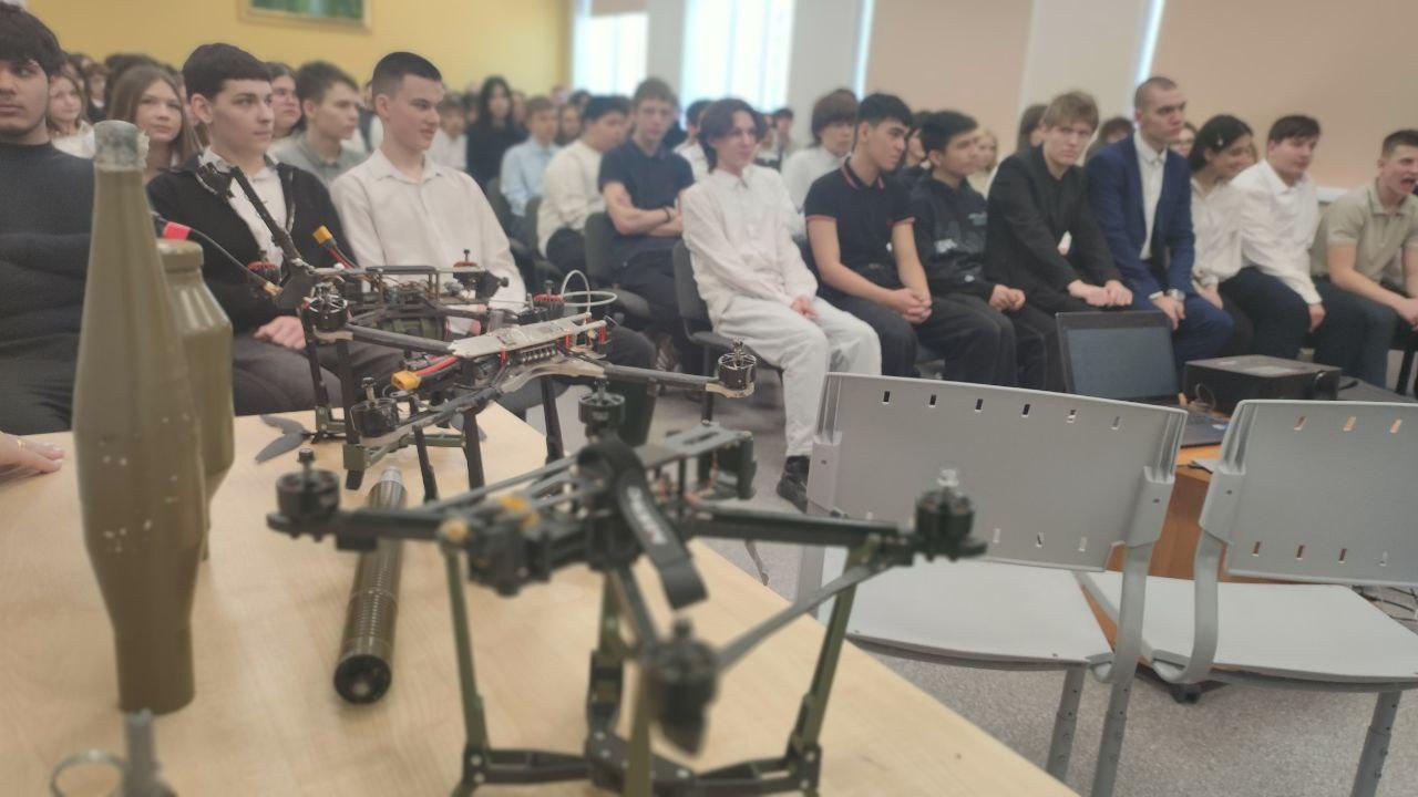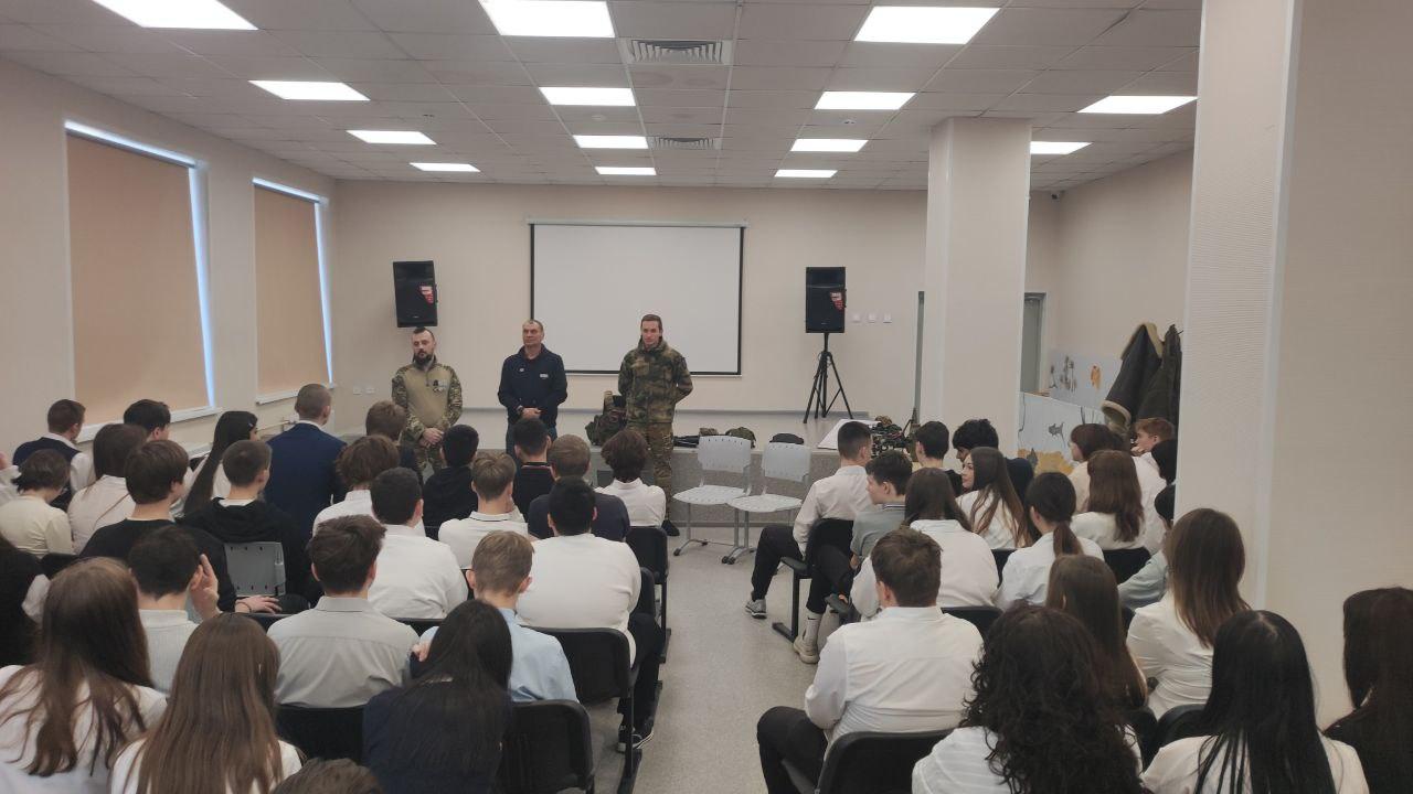 Для школьников также организовали выставку современного снаряжения, включая автоматы, средства защиты и различные типы дронов. Встреча прошла в формате открытого диалога: учащиеся задавали вопросы и делились впечатлениями, выразив желание о новой встрече.