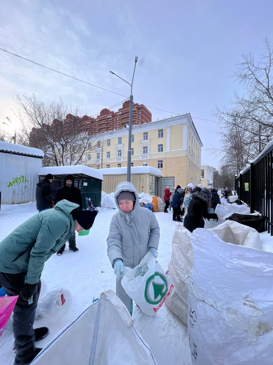 В Долгопрудном прошла очередная экологическая акция по раздельному сбору отходов. Несмотря на мороз, у здания МФТИ собрались волонтёры, чтобы помочь сделать наш город и планету чище.