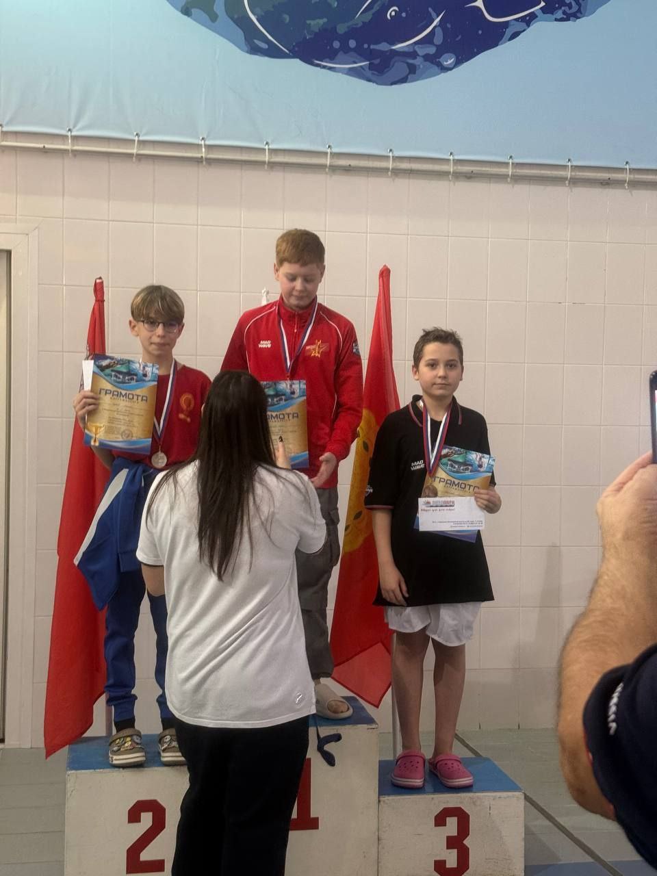 Золотые награды (3): Вероника Корженкова (2009 г.р., дистанция 50 м баттерфляем), Александр Курдин (2008 г.р., 50 м вольный стиль) и Борис Григорьев (2014 г.р., 50 м вольный стиль).