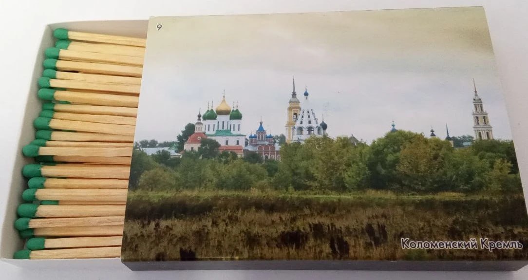 Уникальный экспонат передали в дар Историко-культурному музею-заповеднику Коломенский кремль из столичного Музея спички. Коломенский музей получил сувенирный набор спичек 10 чудес России. На одном из коробков размещено изображение Коломны. Наш город в первый и единственный - на данный момент - раз попал на коробку спичек.