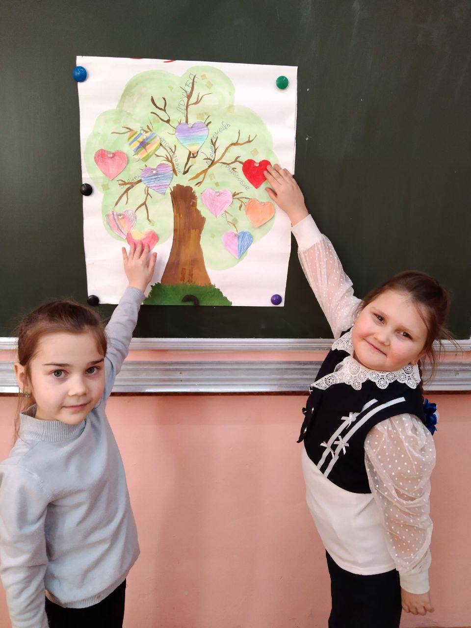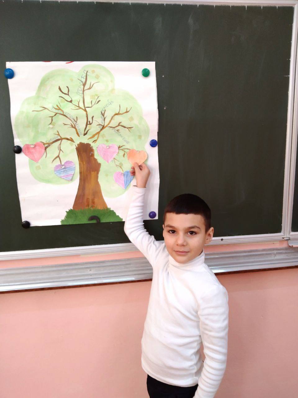 Первоклассники поняли, что добрые дела совершаются бескорыстно, искренне и от всего сердца. Для закрепления полученных знаний и эмоций в конце занятия ребята создали дерево добра, украсив его сердечками с добрыми пожеланиями друг другу.