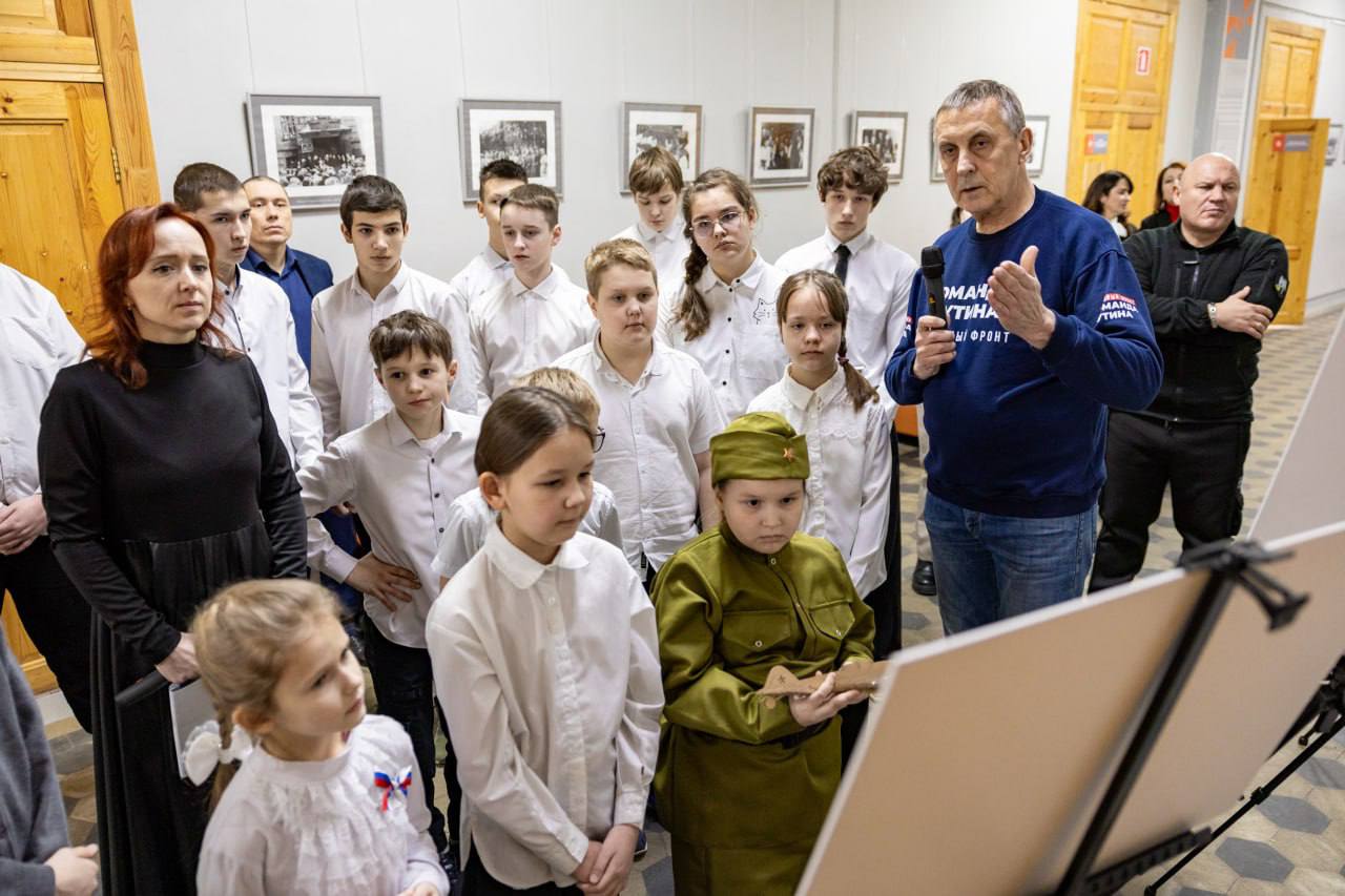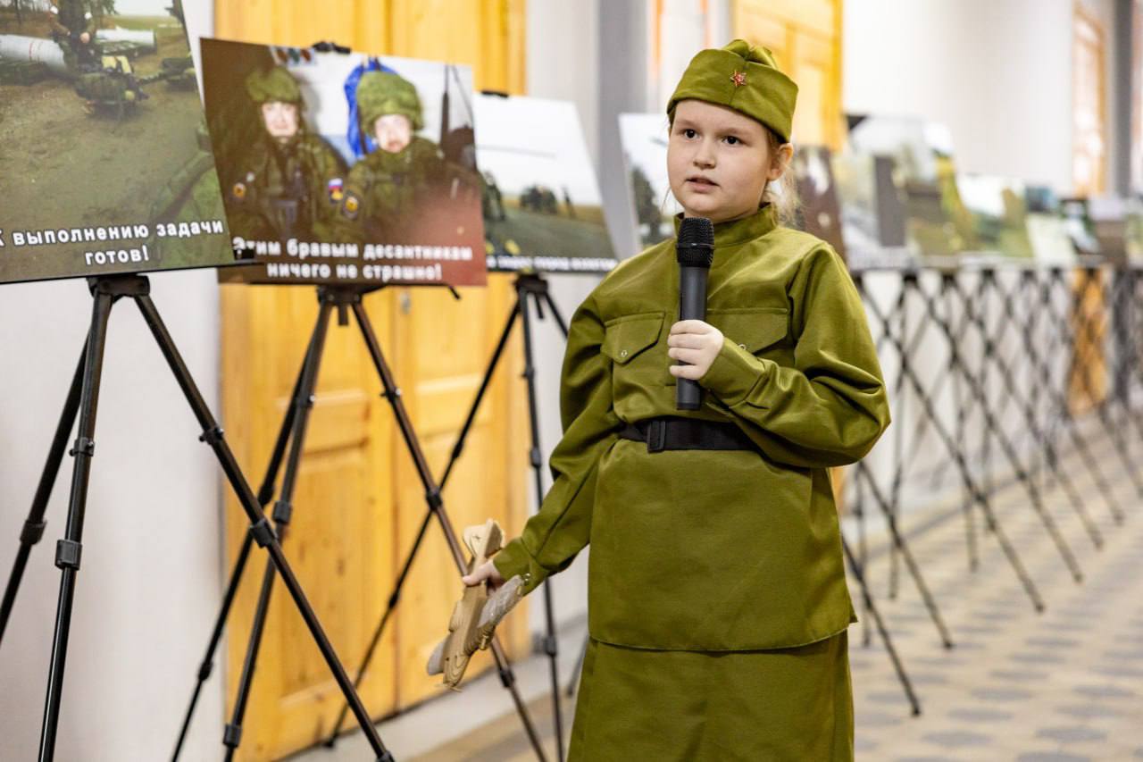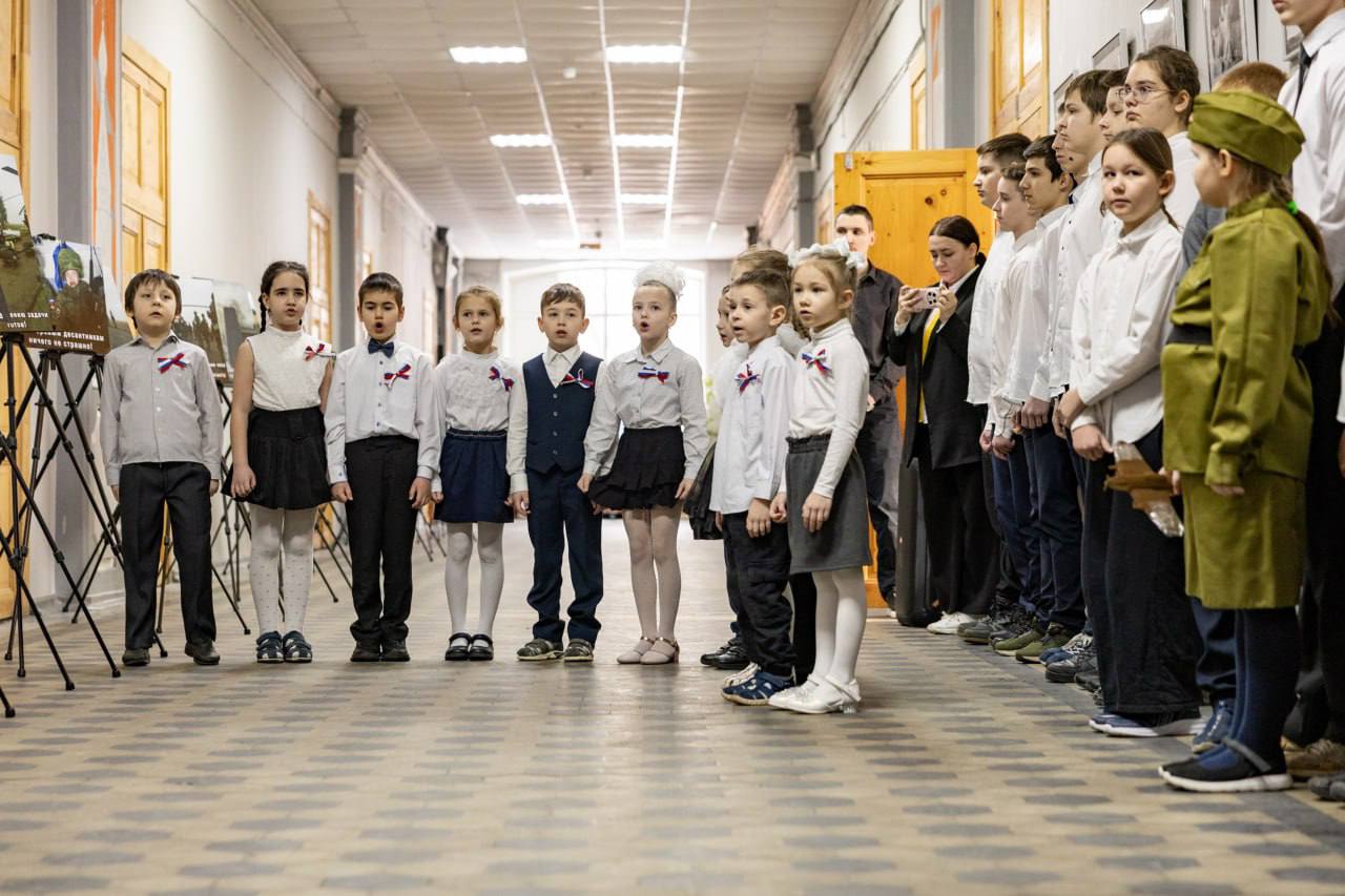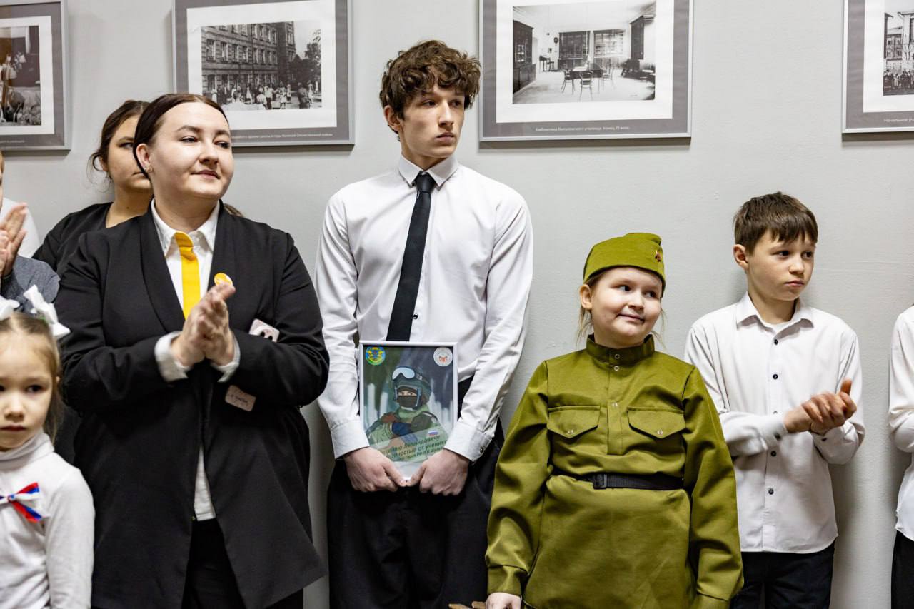На открытии выставки собрались не только ученики школы, но и воспитанники дошкольных учреждений. Для гостей прозвучали стихи и песни, посвящённые героям.