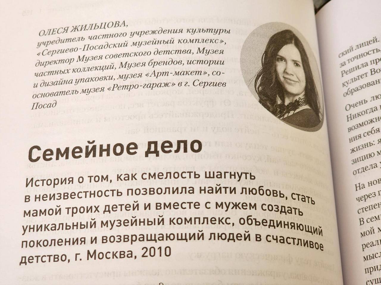 В новом издании собраны жизненные истории женщин, попавших в разные обстоятельства и совершивших важные шаги. Глава Семейное дело рассказывает о создании частного музейного дела, которое Олеся начала вместе со своим супругом Семёном. Это не только история проекта, но и история любви, преодоления и начала нового пути, которое привело к невероятному успеху.