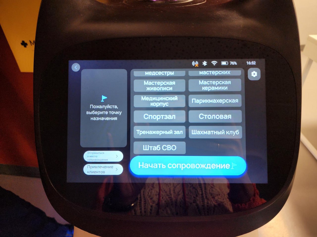 Устройство оснащено искусственным интеллектом и запрограммировано сопровождать человека в любую точку комплекса. Робот может не только сопроводить гостя до нужной точки, но и доставить его вещи, так как его грузоподъемность составляет до 100 кг.