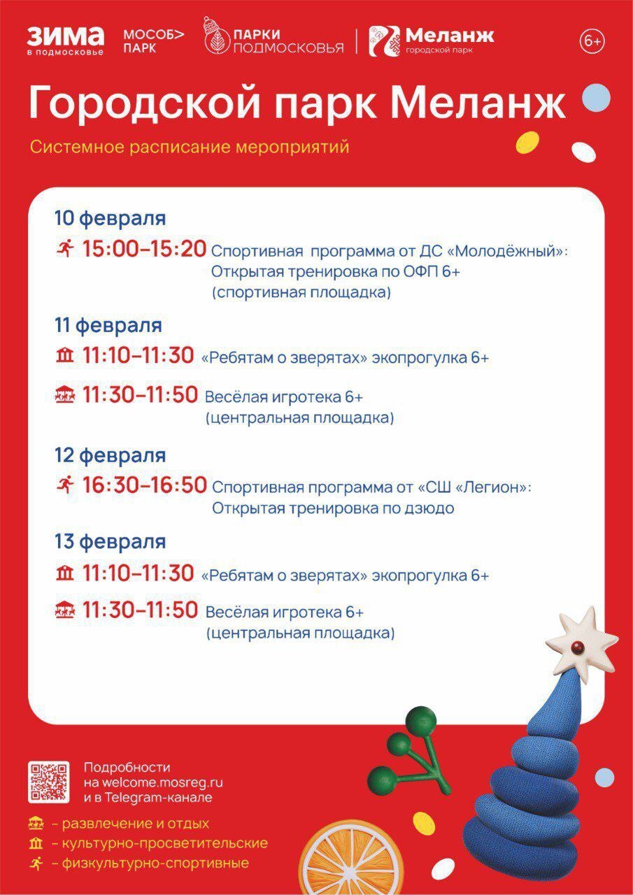 Знакомьтесь с расписанием мероприятий на неделю: мастер-классы, спортивные игры, анимационные программы и многое другое