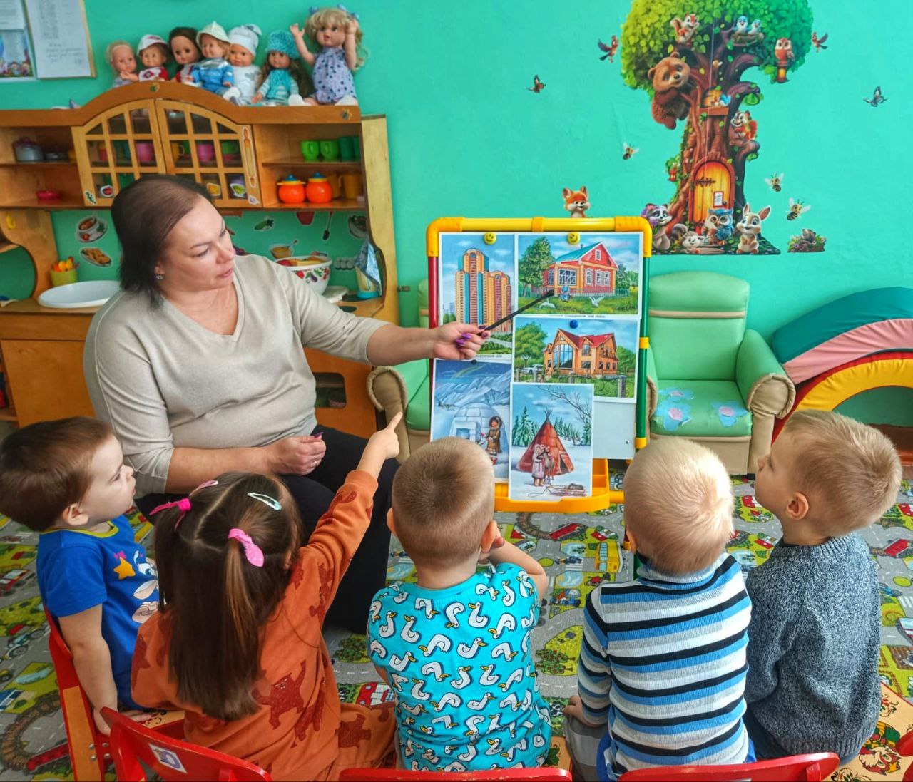 Цель - формирование элементарных представлений о доме, о мебели, которая в нём находится, развитие познавательного интереса к окружающему миру.