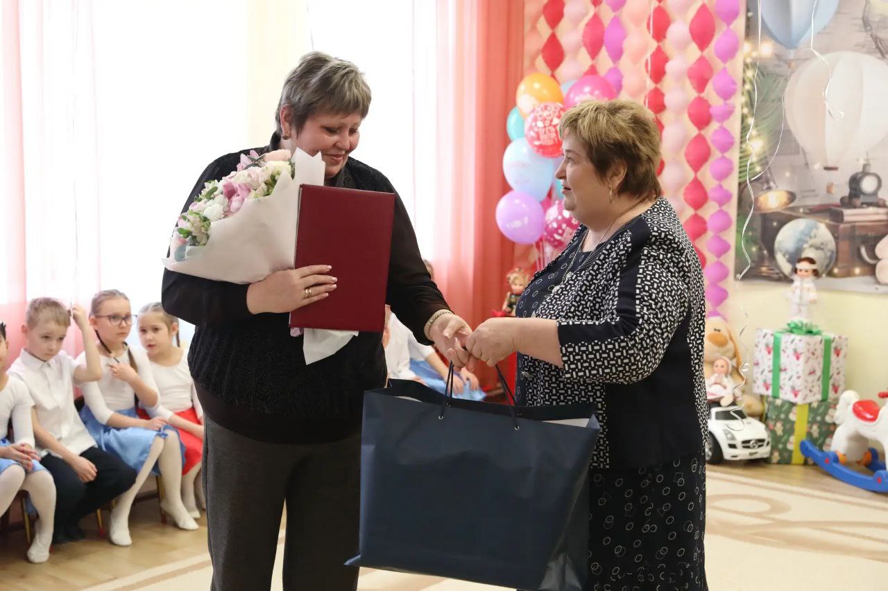 Светлана Курсова зачитала поздравительный адрес главы городского округа и преподнесла подарок, вручила Благодарности педагогам и техническому персоналу.
