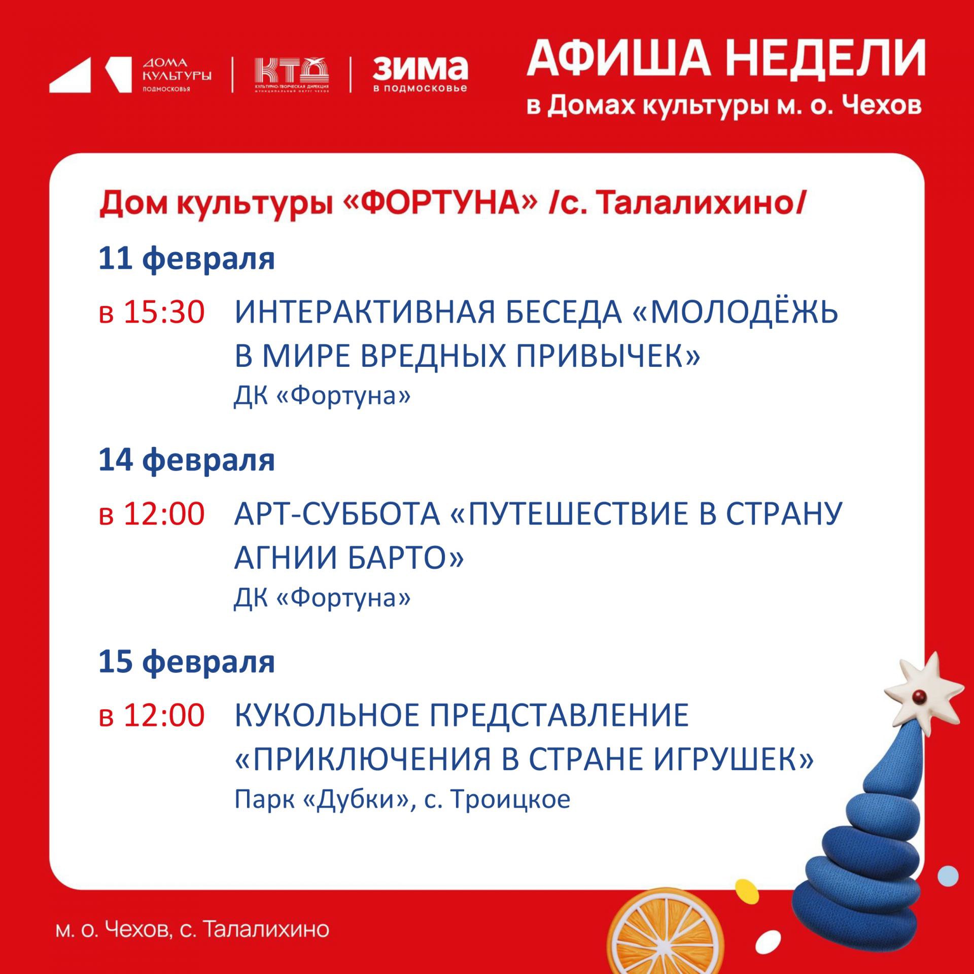 Афиша на неделю ДК Фортуна м.о. Чехов