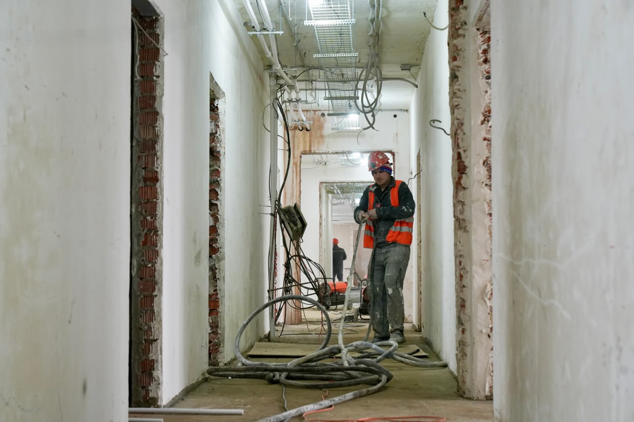 Сейчас здание полностью обновляют: меняют кровлю, фасад, окна, полы. Двор тоже приведут в порядок. К началу учебного года закончим все работы, чтобы 580 ребят продолжили учиться в родной школе. Пока идет ремонт, дети учатся в Тарасковской школе и в школе № 2.