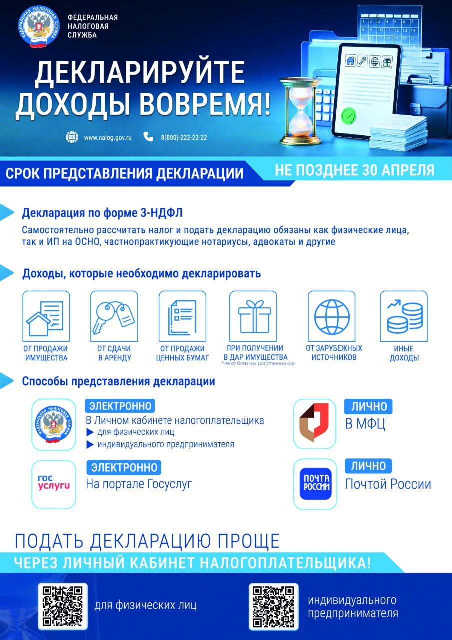 до 30 апреля 2026 — для всех, кто задекларировал доход