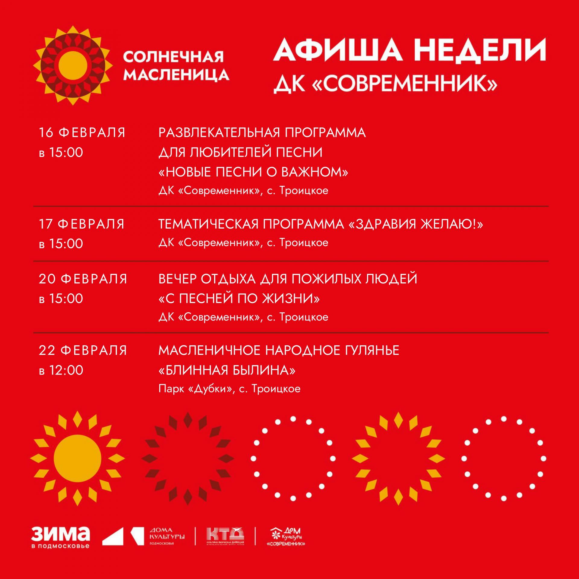 Афиша масленичной недели ДК «Современник» м.о. Чехов