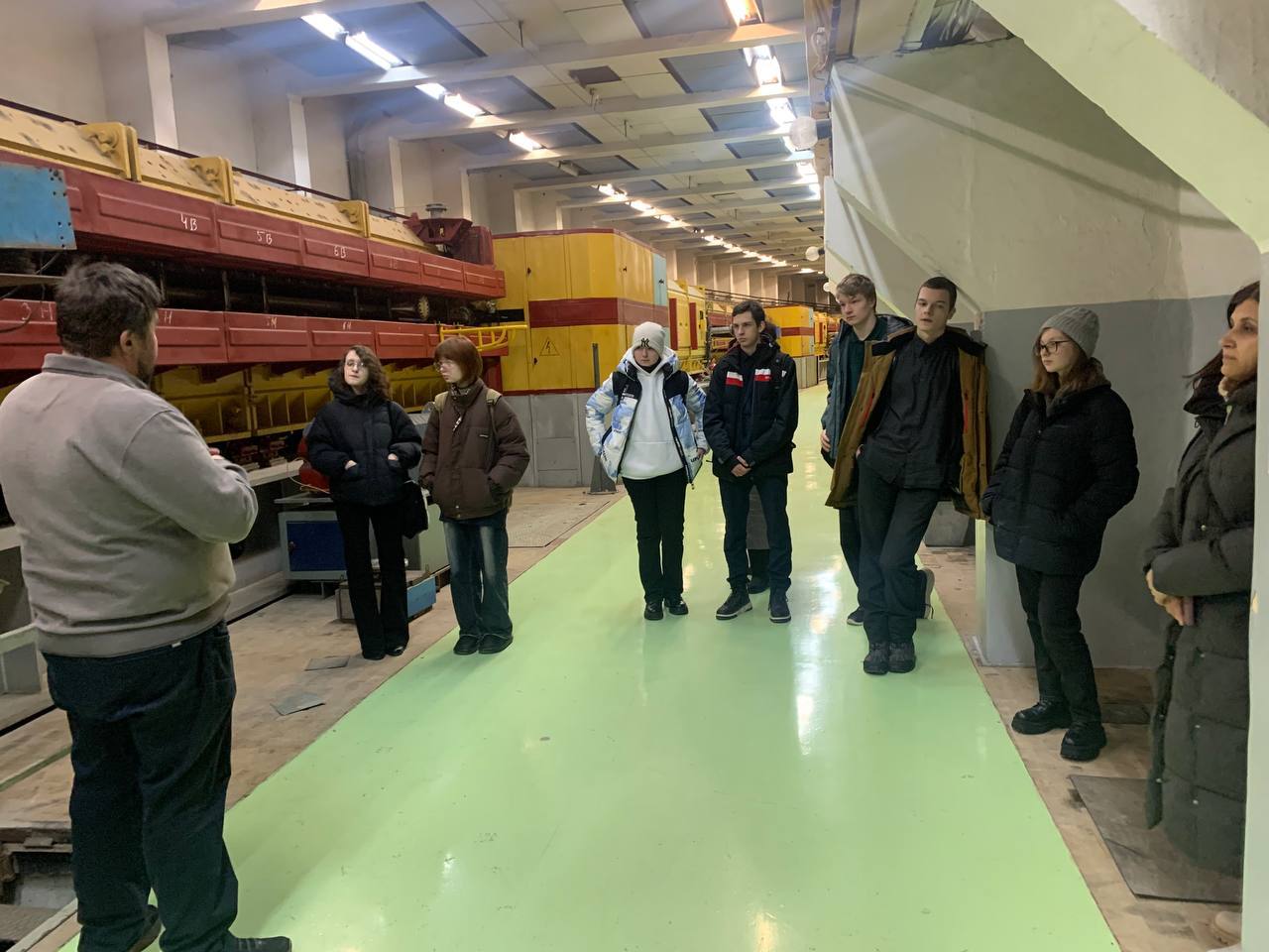 Специалисты института провели для школьников экскурсию по легендарному ускорительному комплексу У-70. Гости своими глазами увидели масштабную научную установку, которая включает в себя два линейных ускорителя (И-100 и УРАЛ-30), а также два кольцевых ускорителя — бустер У-1,5 и сам протонный синхротрон У-70.