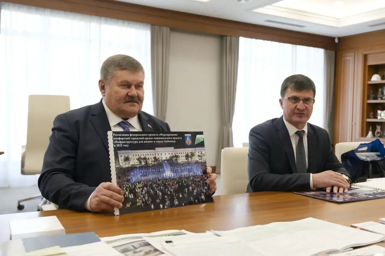 Министр строительства и ЖКХ РФ Ирек Файзуллин провел рабочую встречу с Главой администрации города Байконур Константином Бусыгиным