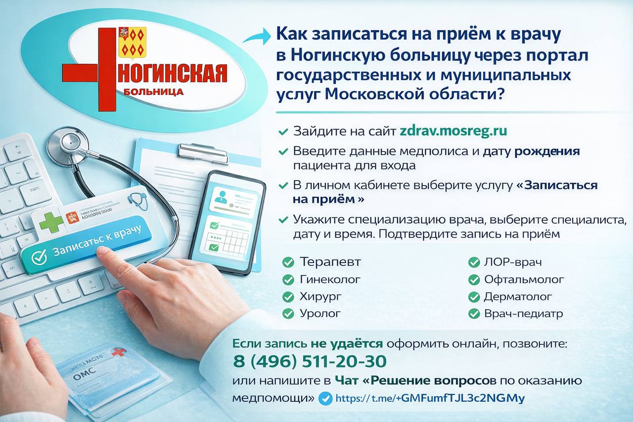 Как записаться на прием к врачу в Ногинскую больницу через портал государственных и муниципальных услуг Московской области?