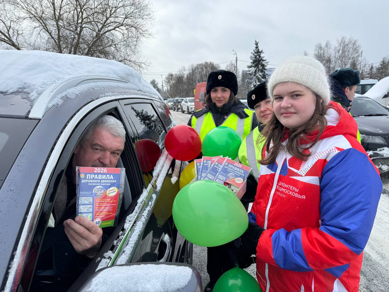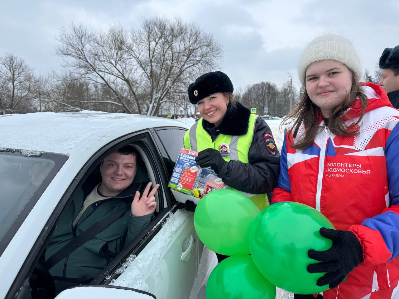 Волонтеры Подмосковья муниципального округа Чехов совместно с госавтоинспекторами поздравили мужчин-автолюбителей с наступающим праздником!