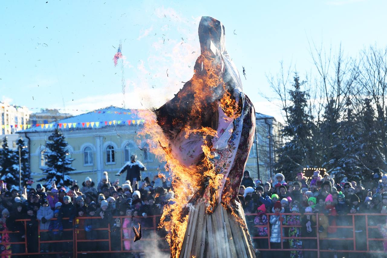 Кульминацией праздника стало фаер-шоу и традиционное сжигание чучела Масленицы.