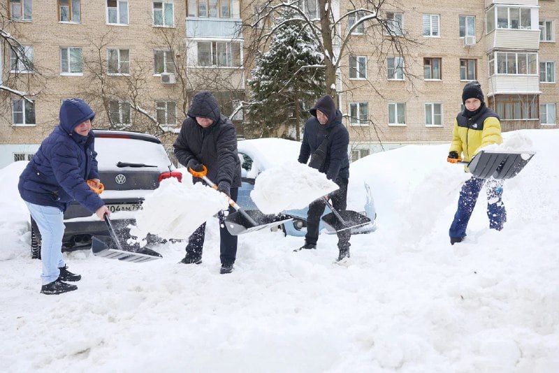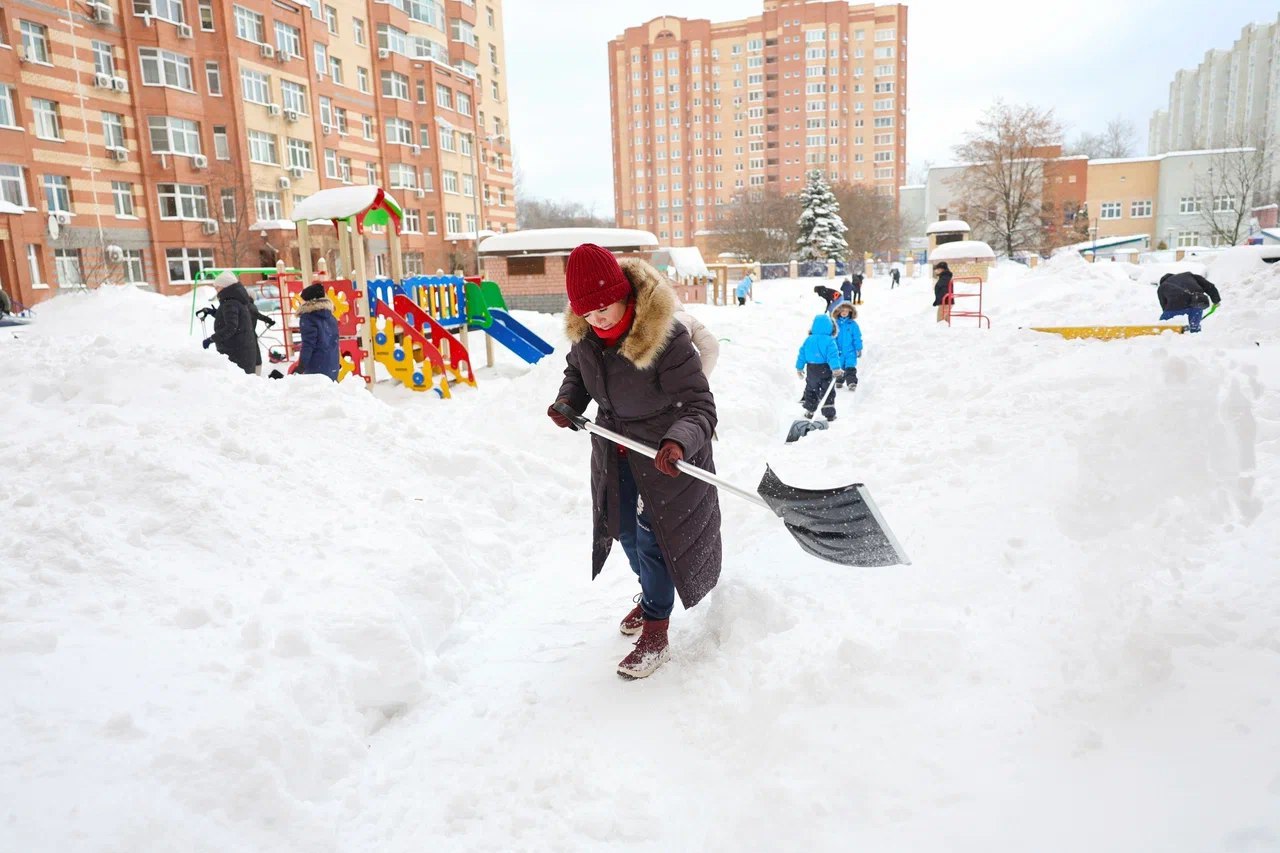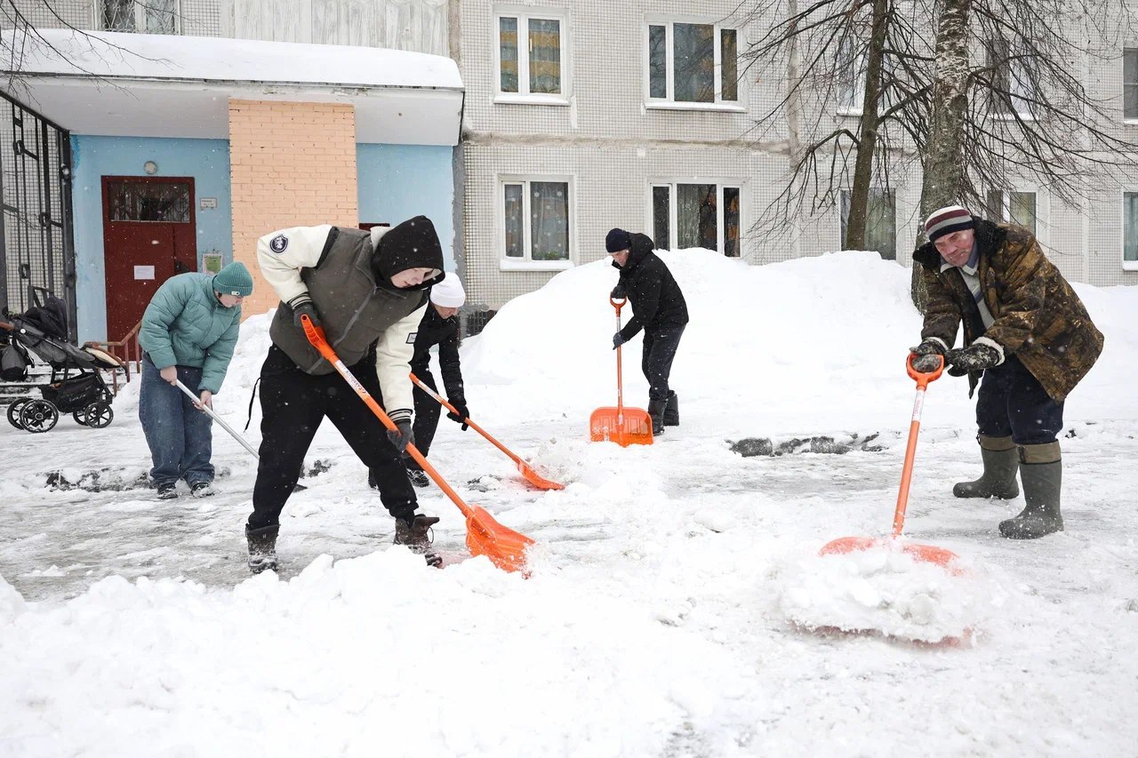Жители Мытищ присоединились к субботнику по уборке снега