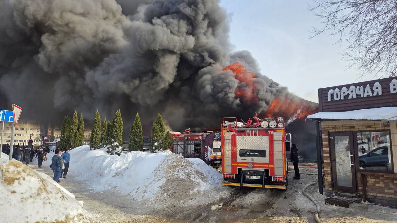 Мощный пожар в Балашихе, по предварительным данным, в Саввино полыхает автомойка. На месте работают пожарные.