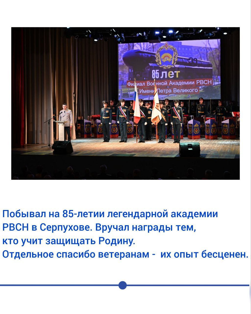 Побывал на 85-летии легендарной академии РВСН в Серпухове. Вручал награды тем, кто учит защищать Родину. Отдельное спасибо ветеранам - их опыт бесценен.