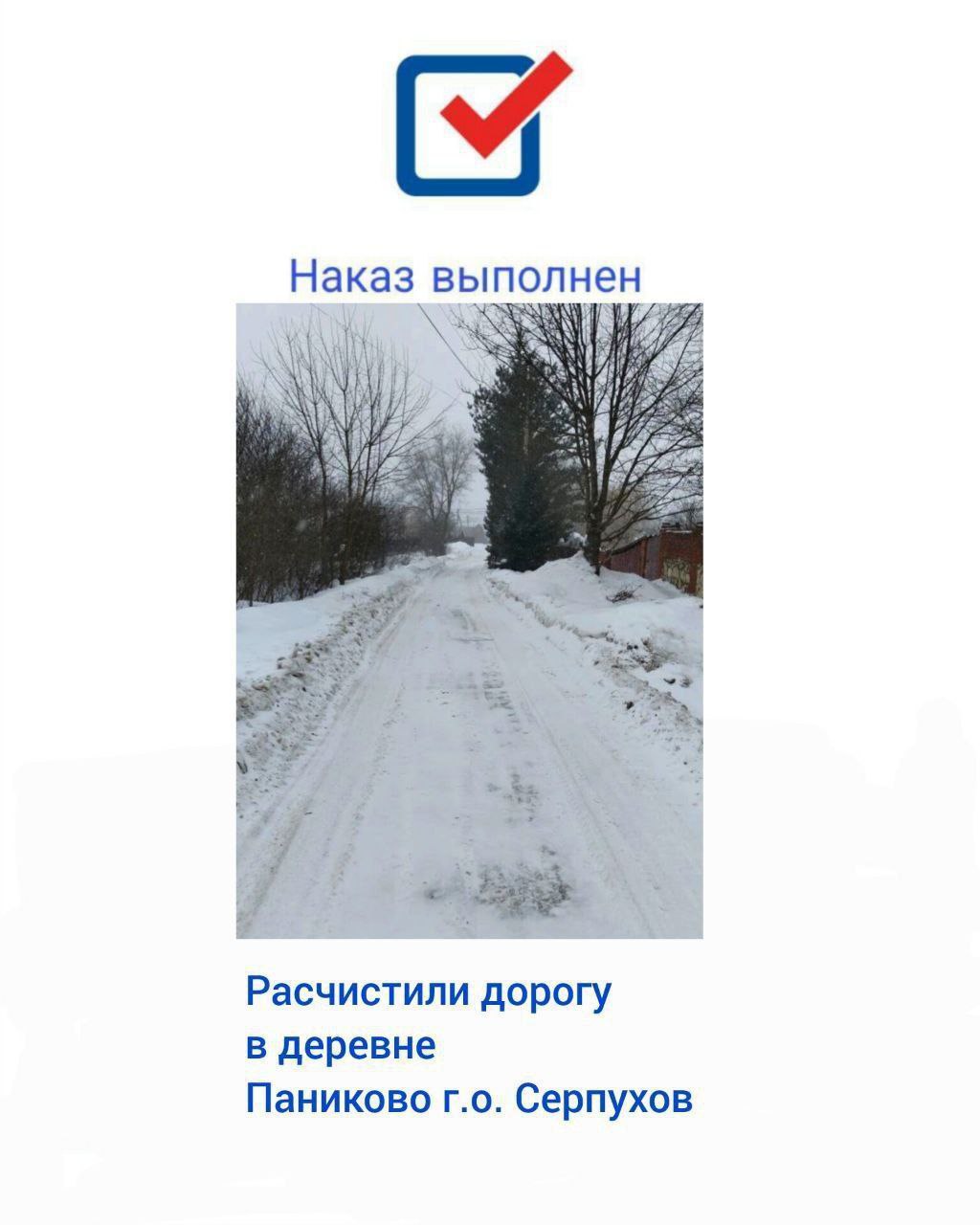 В деревне Паниково г.о. Серпухов расчистили дорогу, которую замело так, что проехать было нельзя.