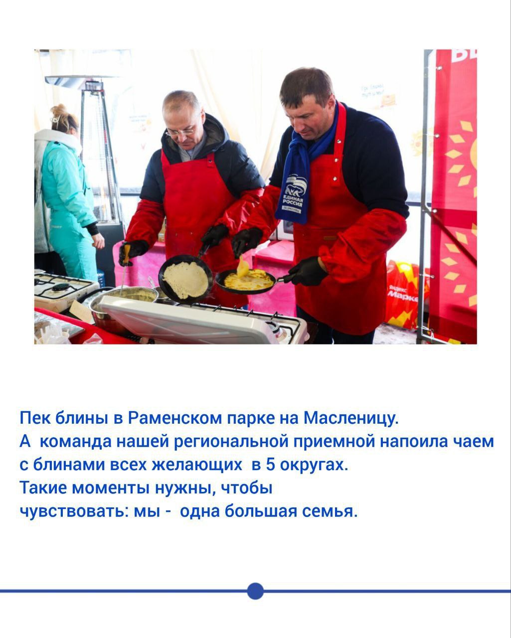 Пек блины в Раменском парке на Масленицу. А команда нашей региональной приемной напоила чаем с блинами всех желающих в 5 округах. Такие моменты нужны, чтобы чувствовать: мы - одна большая семья.