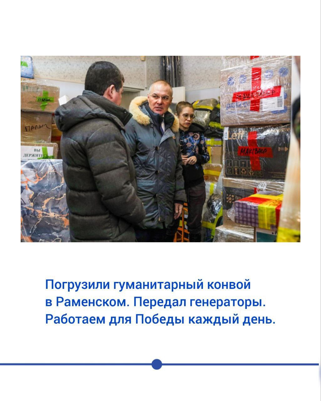 Погрузили гуманитарный конвой в Раменском. Передал генераторы. Работаем для Победы каждый день.