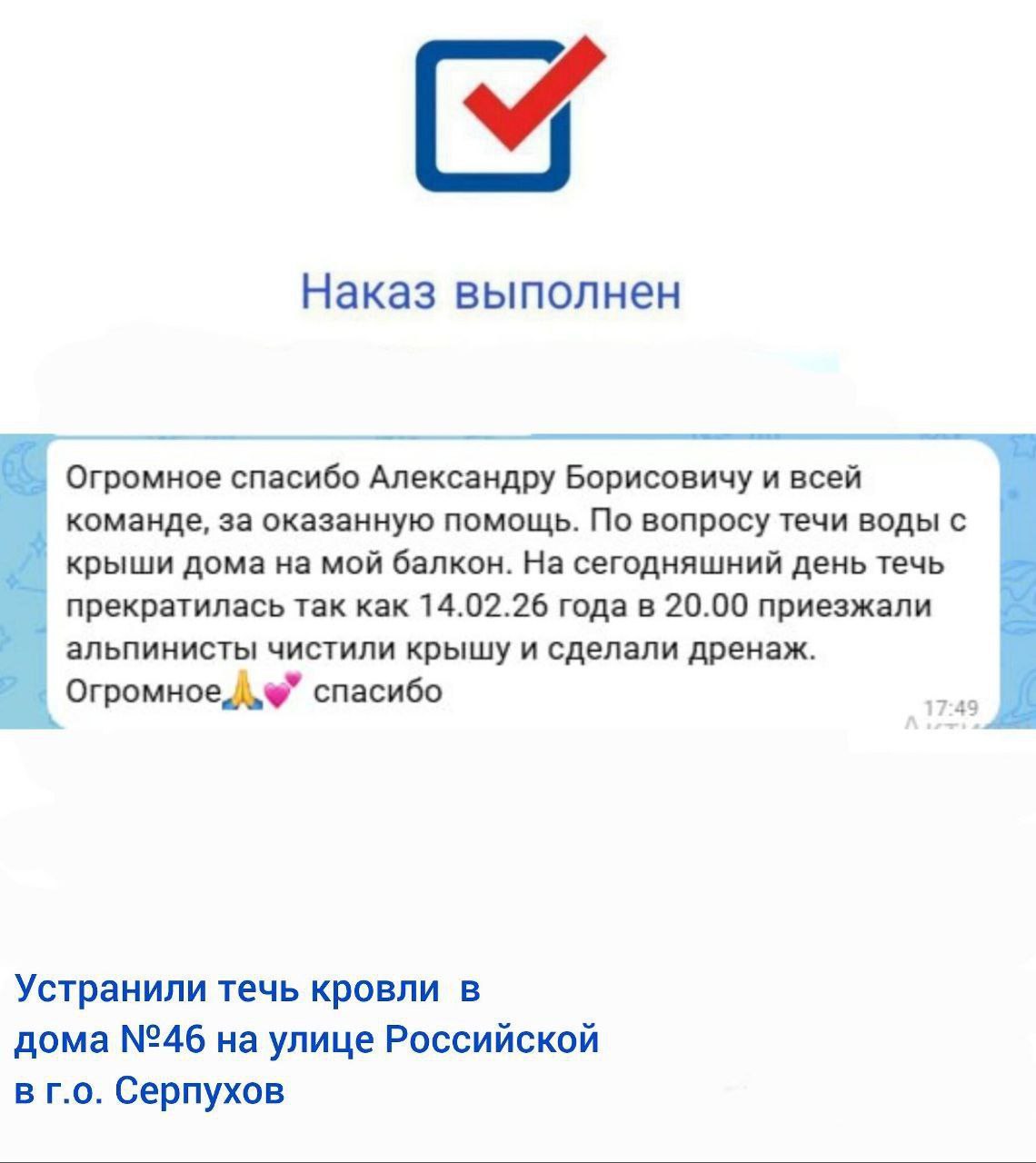 В Серпухове на ул. Российской спасли квартиру от потопа - убрали "водяные пузыри" с кровли. Спасибо УК за оперативность.