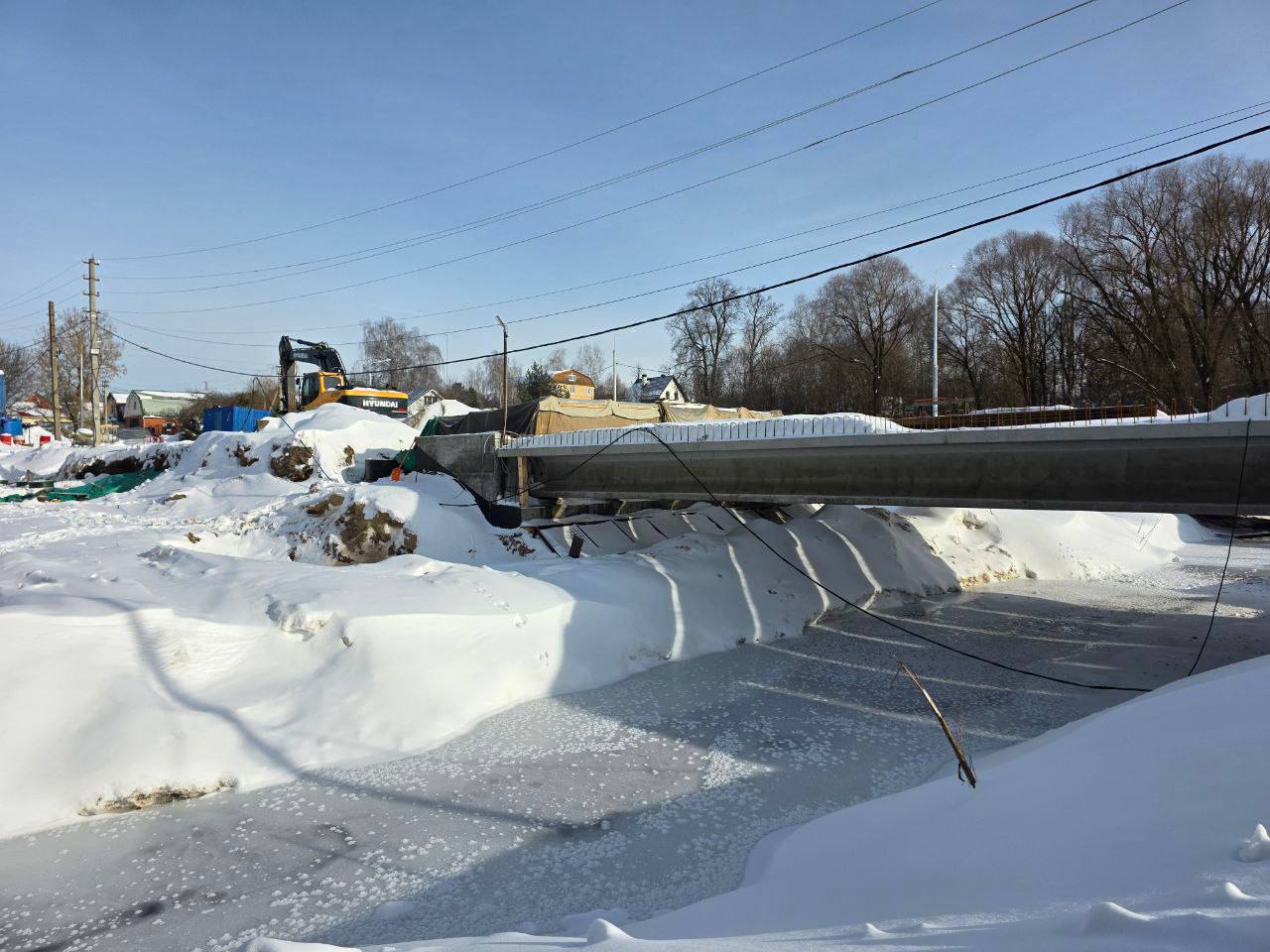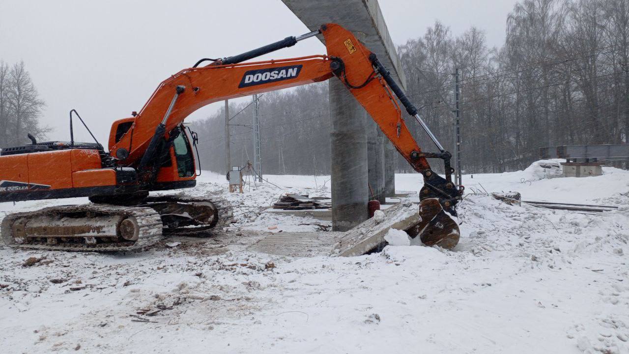 Параллельно ведутся работы по переустройству временной дороги со стороны деревни Лукино, а также подготовка площадки под стапель №2 для последующей укрупнительной сборки блоков пролетного строения. Реконструкция проводится по программе Губернатора Московской области.