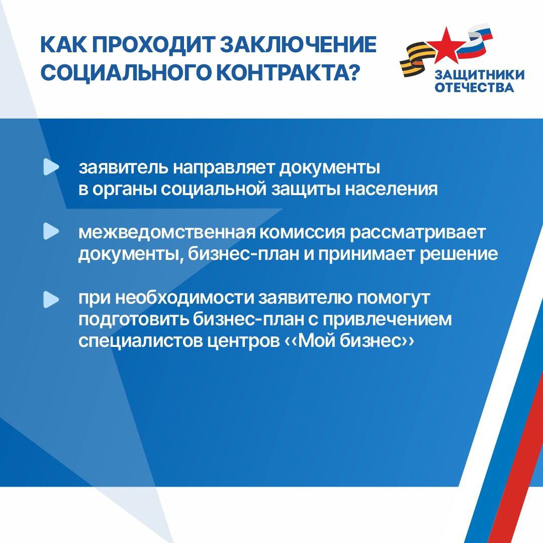 Процесс заключения социального контракта прост и понятен. От первого обращения в региональный филиал фонда «Защитники Отечества» до получения финансирования героев сопровождают опытные специалисты. Они помогают оценить компетенции, подготовить бизнес-план, пройти необходимое обучение и оформить документы.