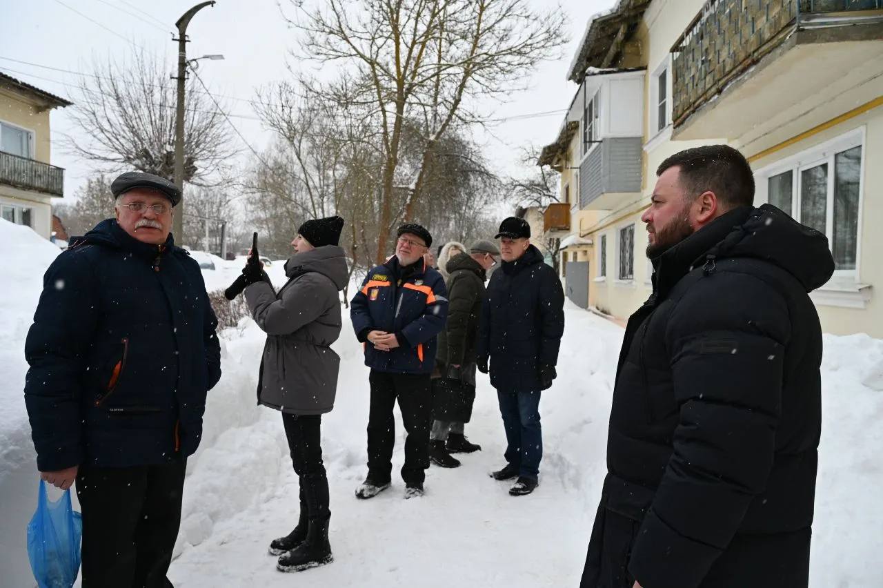 В ходе проверки выявлен ряд замечаний: необходимо убрать наледь с крыш торгового комплекса, очистить тротуары, устранить граффити на гаражах и привести в порядок дворовые территории домов №28, 34 и 36. Также зафиксированы проблемы с протечкой кровли и состоянием контейнерной площадки.
