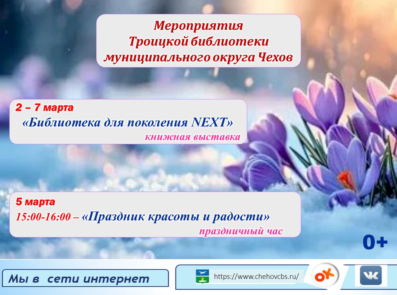 Афиша Троицкой библиотеки муниципального округа Чехов