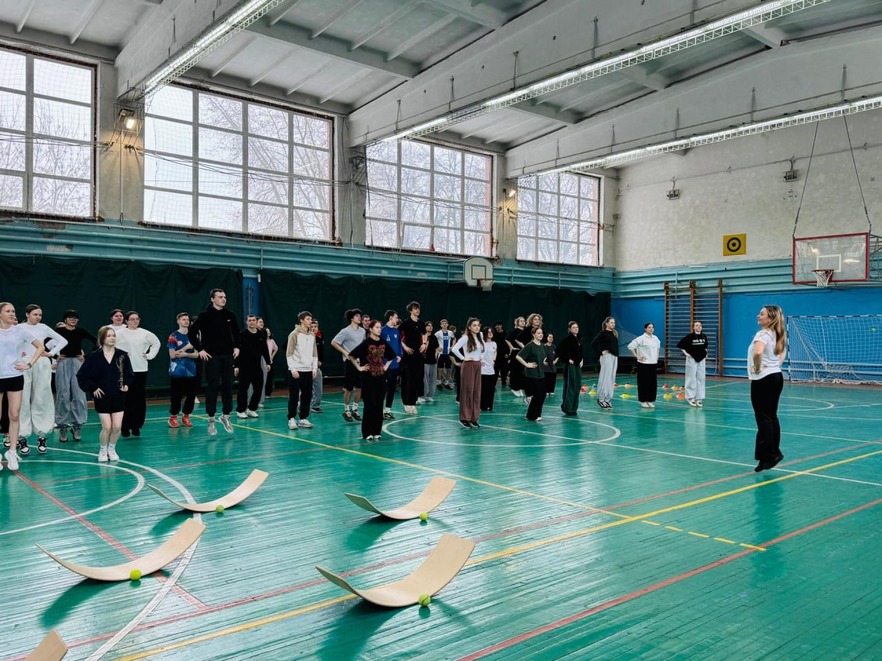 Участники познакомились с «играми с парашютом» для развития командного духа, нейрогимнастикой с использованием кинезиологических мячей и работой на тренажёре «Сибирский борд» для тренировки вестибулярного аппарата.