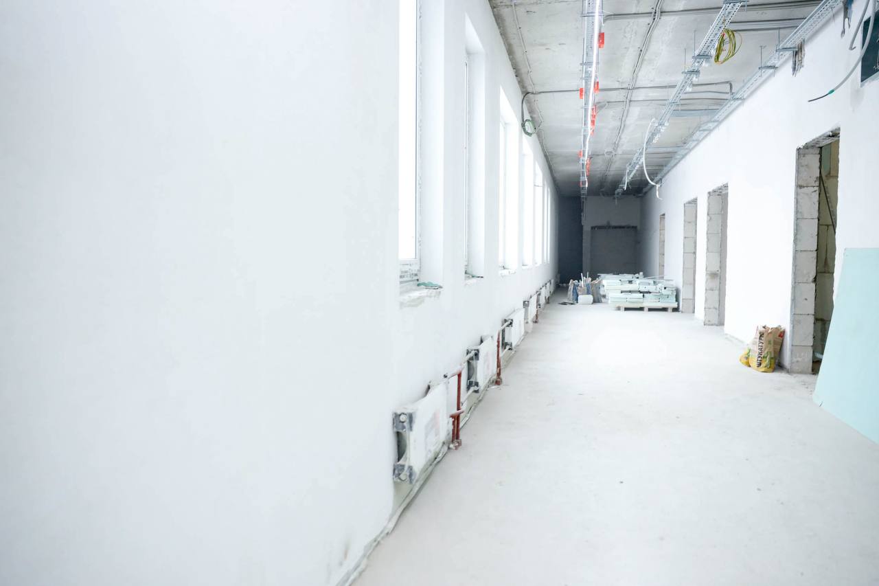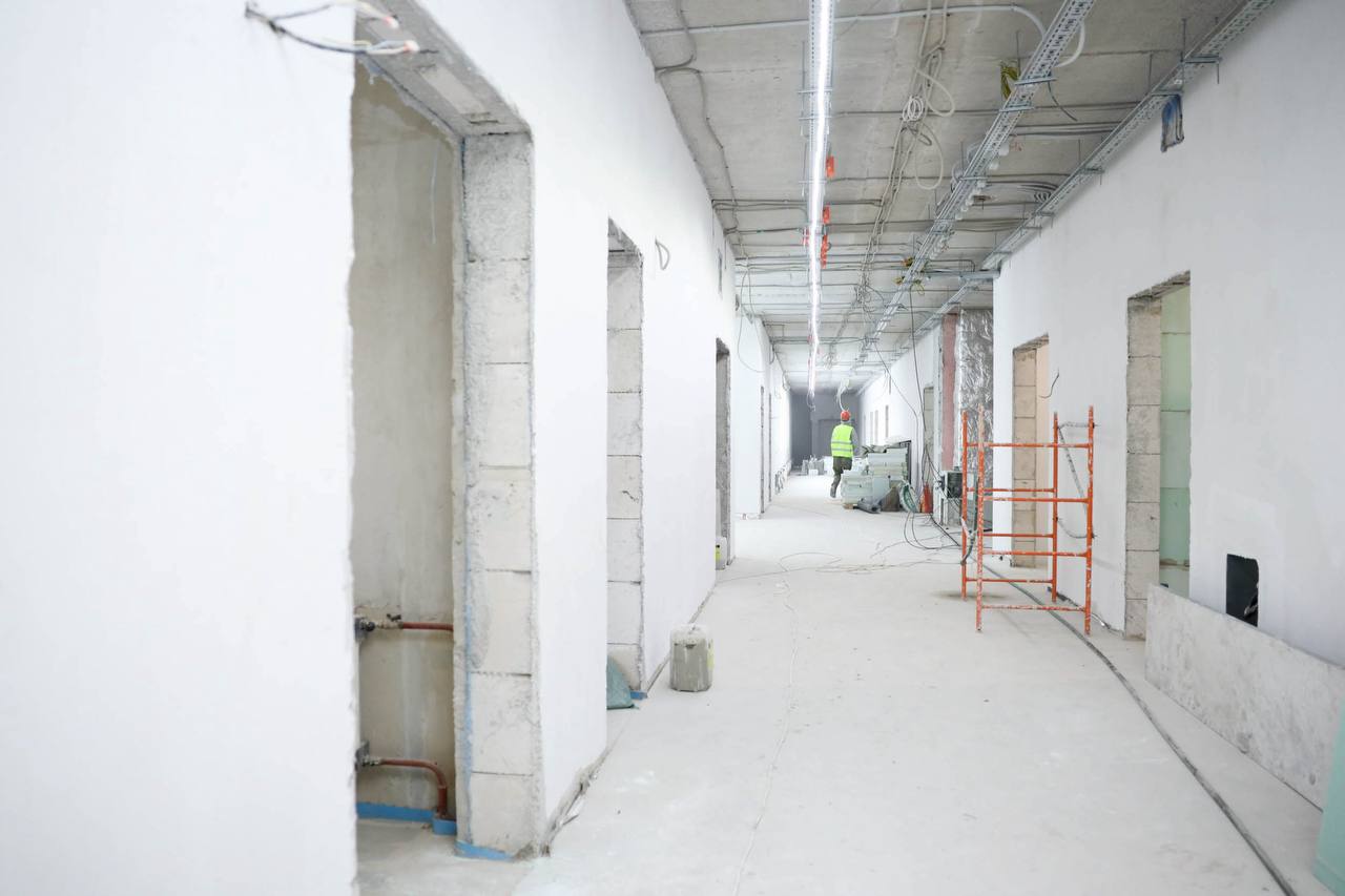 На объекте ведется утепление фасада, проложены инженерные сети, подключено отопление, монтируются лифты, завершаются кладочные работы верхних этажей. Следующий этап – финишная отделка помещений.