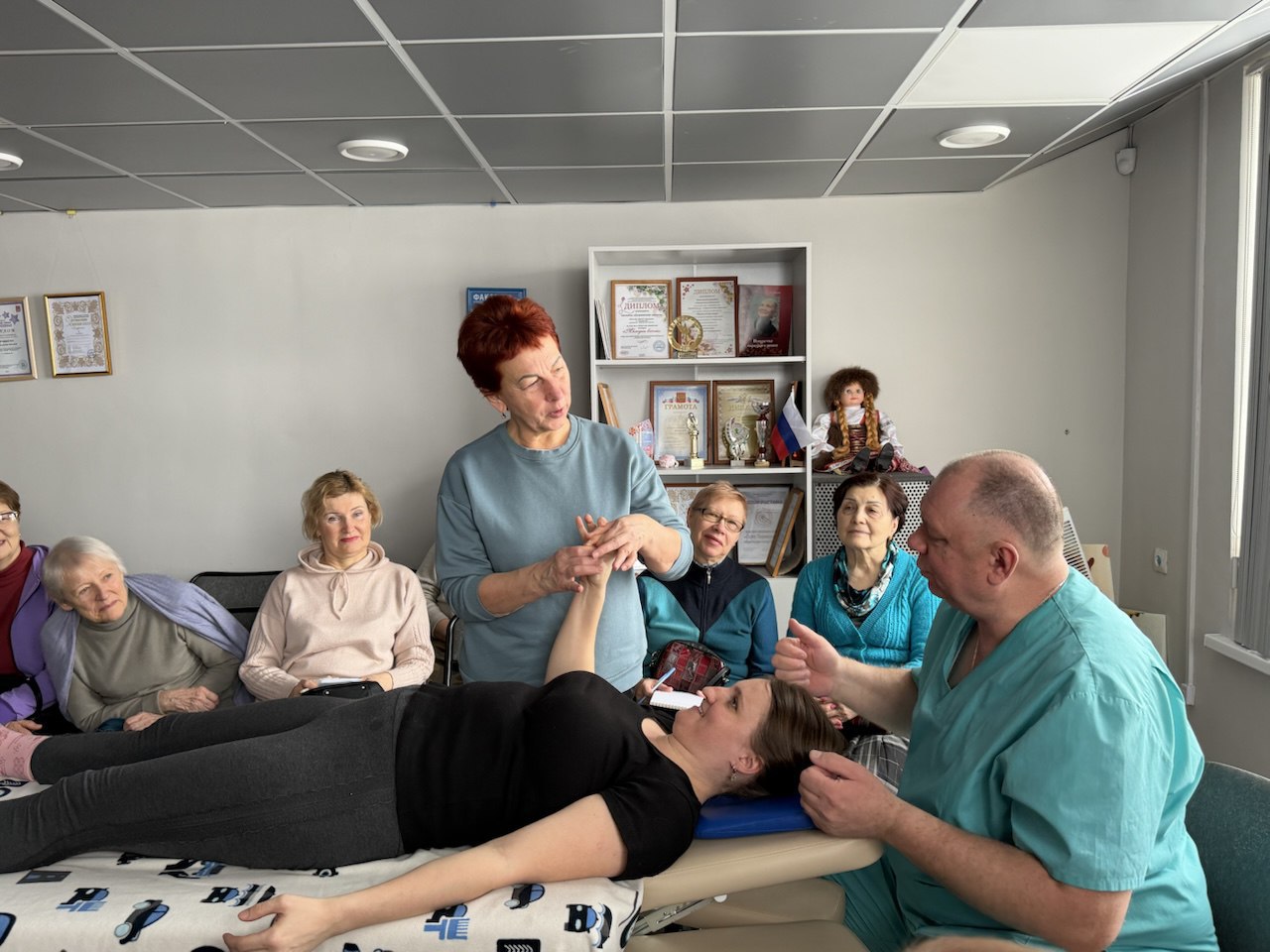 Отдельное внимание на мастер – классе было уделено комплексу упражнений по нейрогимнастике для активизации естественных механизмов работы мозга. Также все желающие смогли пройти диагностику плечевого сустава.