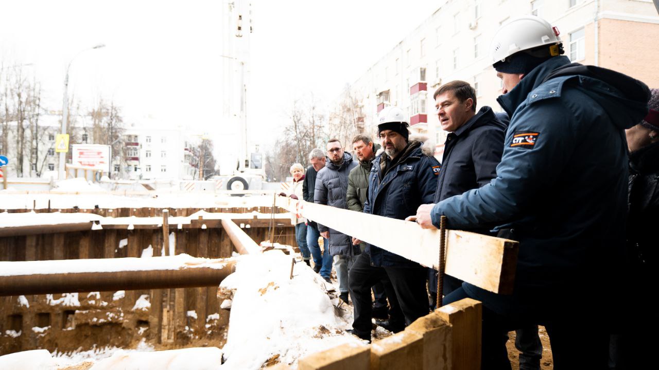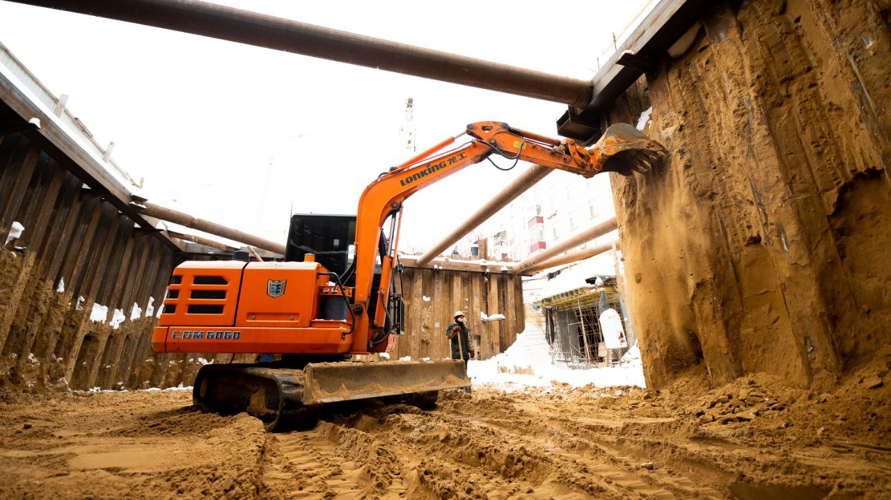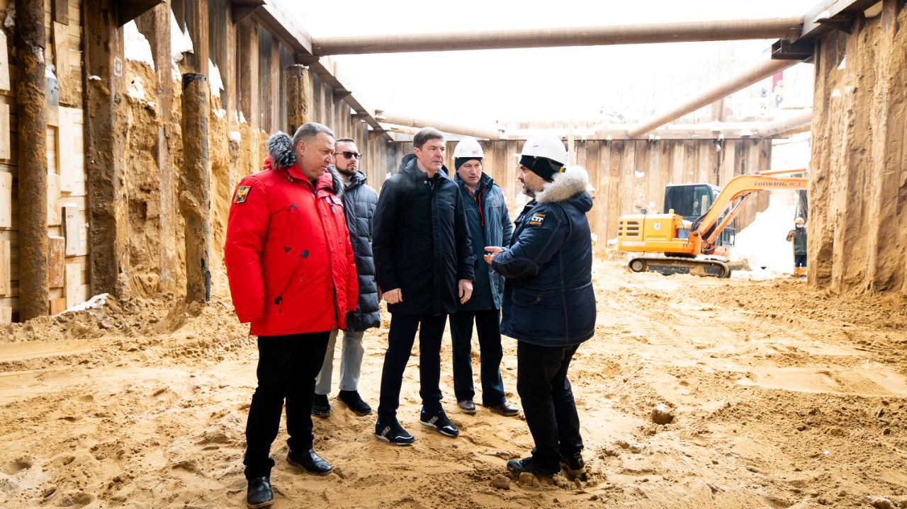Сегодня площадку посетили вместе с депутатами и жителями округа. Подрядчик разрабатывает грунт котлована, обваривает узлы крепления, армирует стены, ведет гидроизоляцию.