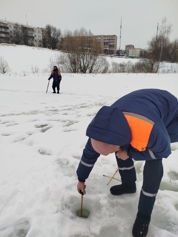 Спасатели АСГ «ЧеховСпас» провели замеры толщины льда 02.03.2026г. на водоемах по адресу: