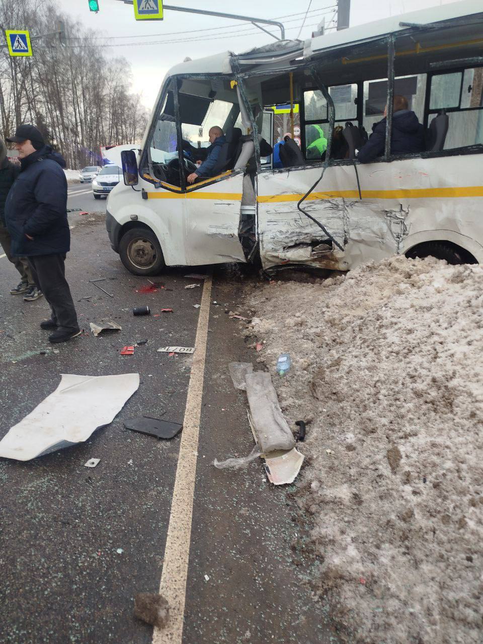В подмосковном Пушкино маршрутка столкнулась с грузовиком — два человека погибли, еще шестеро пострадали.