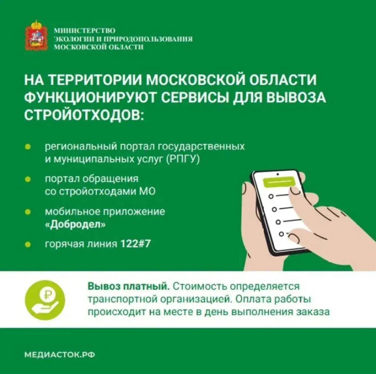Министерством экологии и природопользования Московской области запущен сервис по вывозу строительных отходов.