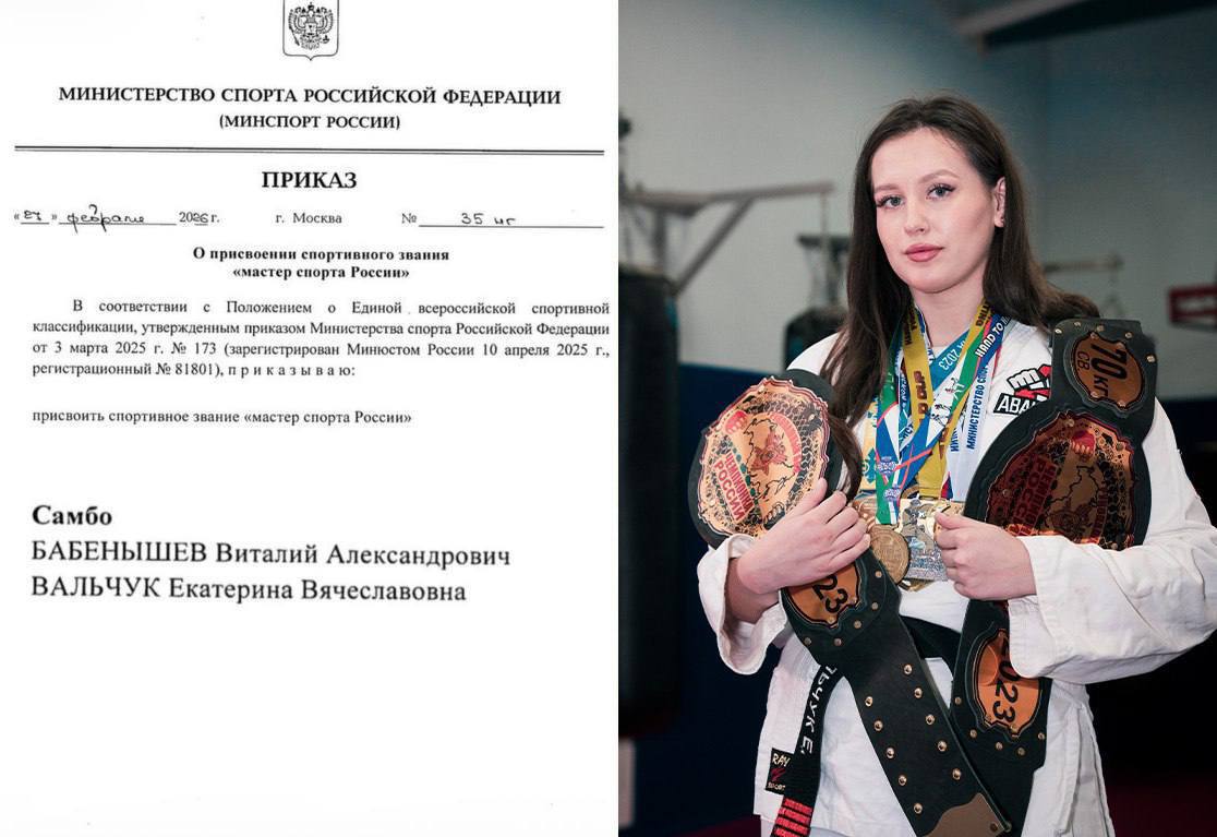 Поздравляем нашу землячку, талантливую девушку Екатерину Вальчук с присвоением очередного почетного звания «Мастер спорта России по самбо». Пусть этот титул станет стартом для новых спортивных подвигов.