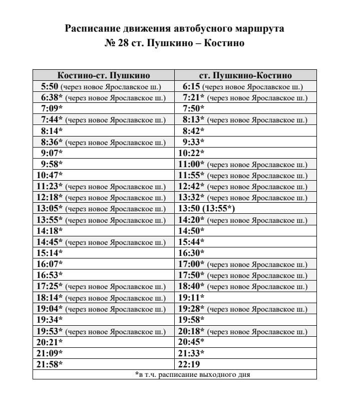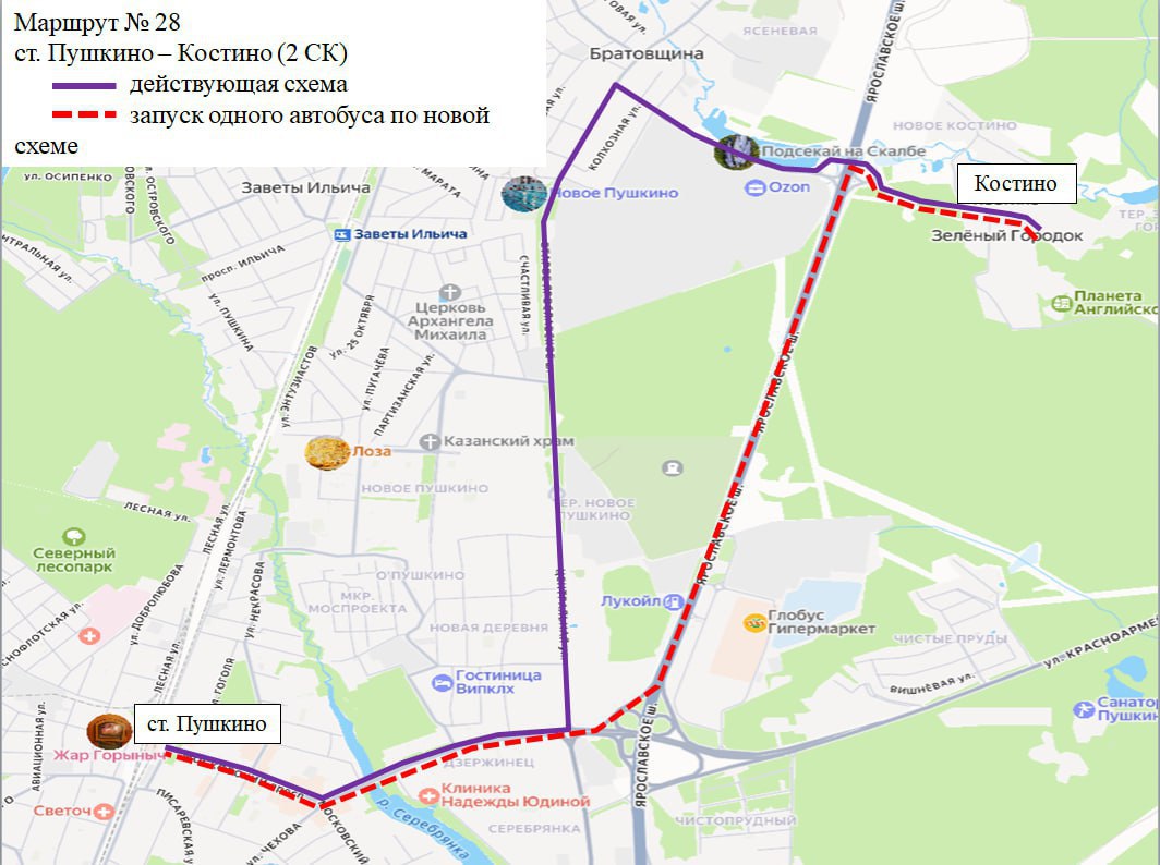 Внимание! Изменение схемы движения на автобусном маршруте № 28 «ст. Пушкино – Костино»