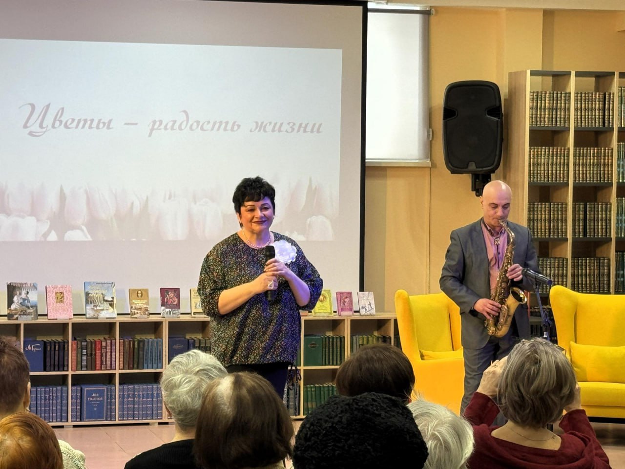 4 марта в Центральной библиотеке им. А.С. Пушкина царила атмосфера теплоты и радости. Концерт «Цветы – радость жизни!» объединил ценителей поэзии, музыки, пения, хореографии и театрального искусства. Среди гостей были участницы Ногинского городского женского совета, который возглавляет Ирина Костенко, и клуба «Литературные встречи» под руководством Нелли Литвиновой.
