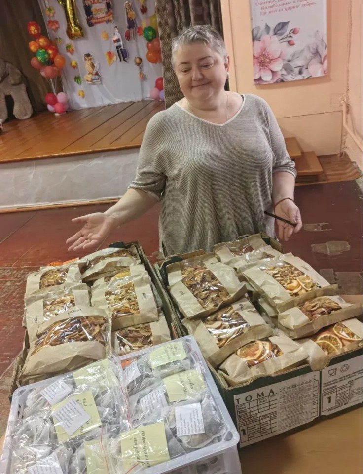 Сейчас готовятся к 8 Марта. Нужно сеть, сдать, посылки собрать. Жители несут, кто что может: сладости, теплые носки.