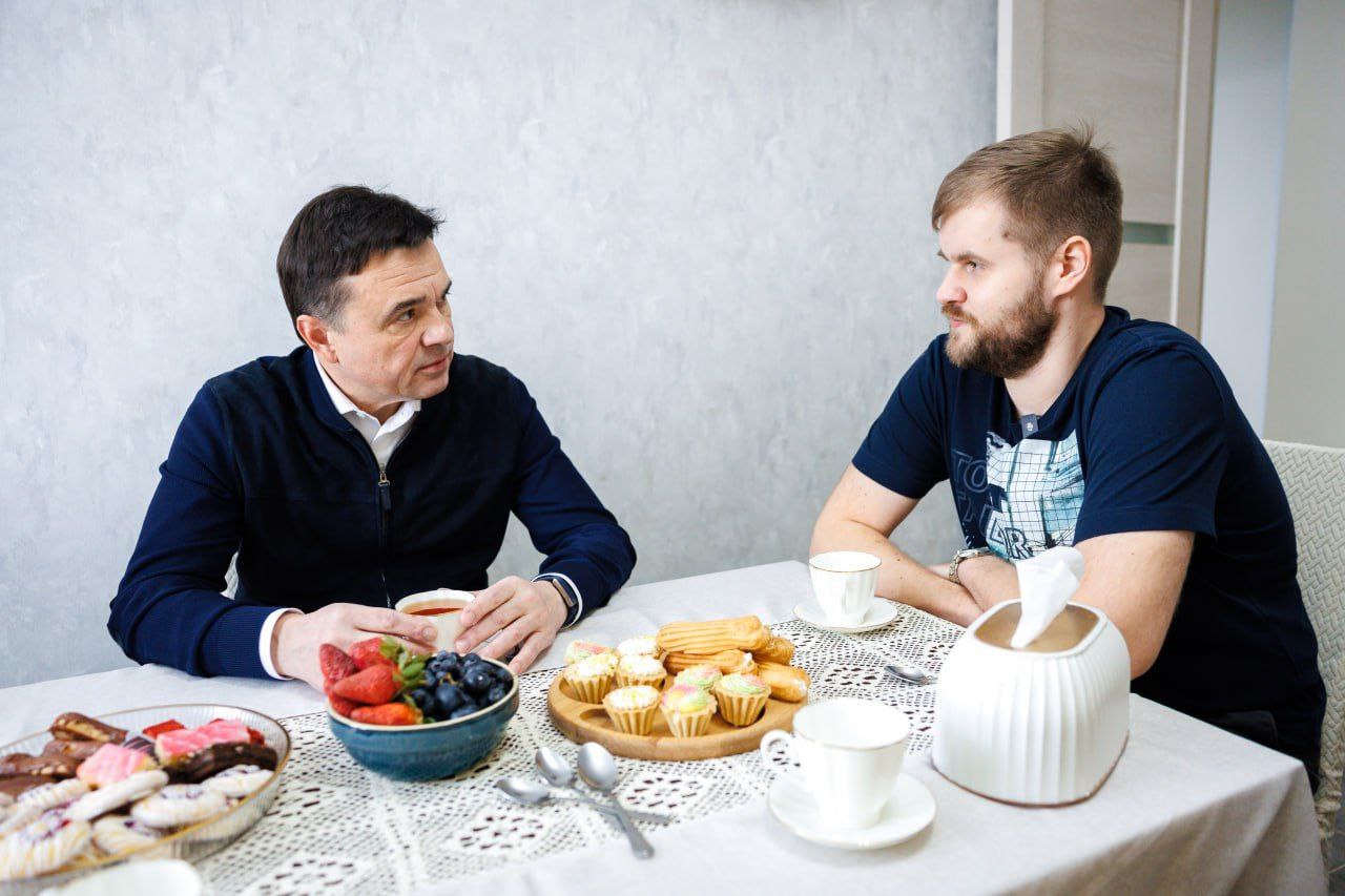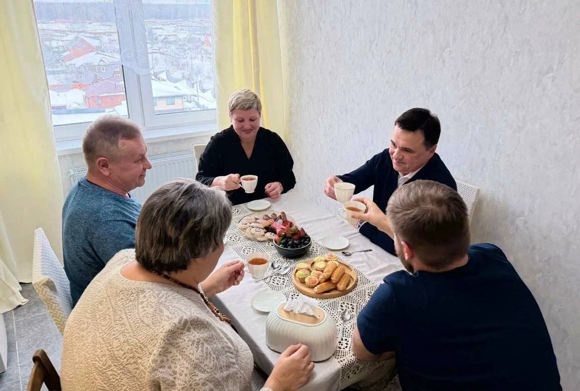 Андрей Воробьев навестил новоселов, которые переехали из аварийного жилья в новый дом на ул. Владимирская в Сергиевом Посаде