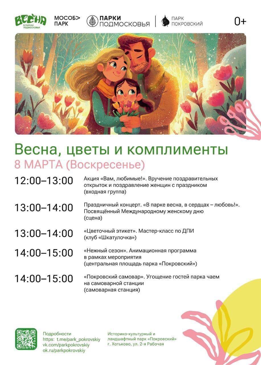 В честь Международного женского дня парки Сергиево-Посадского округа подготовили праздничную программу «Весна, цветы и комплименты»