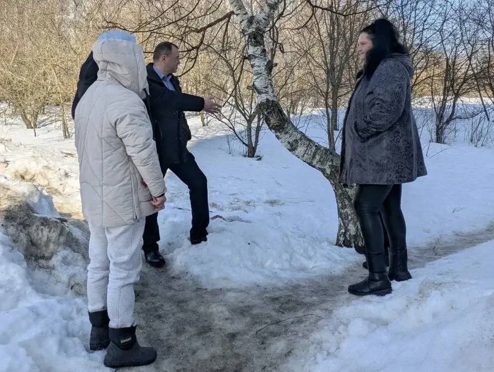Рабочий выезд состоялся по поручению главы округа Оксаны Ерохановой после обращения жителей на «выездной администрации». Заместитель главы округа Роман Сусанин прошелся по основным маршрутам, а также обсудил с жителями, где нужно усилить уборку в первую очередь.