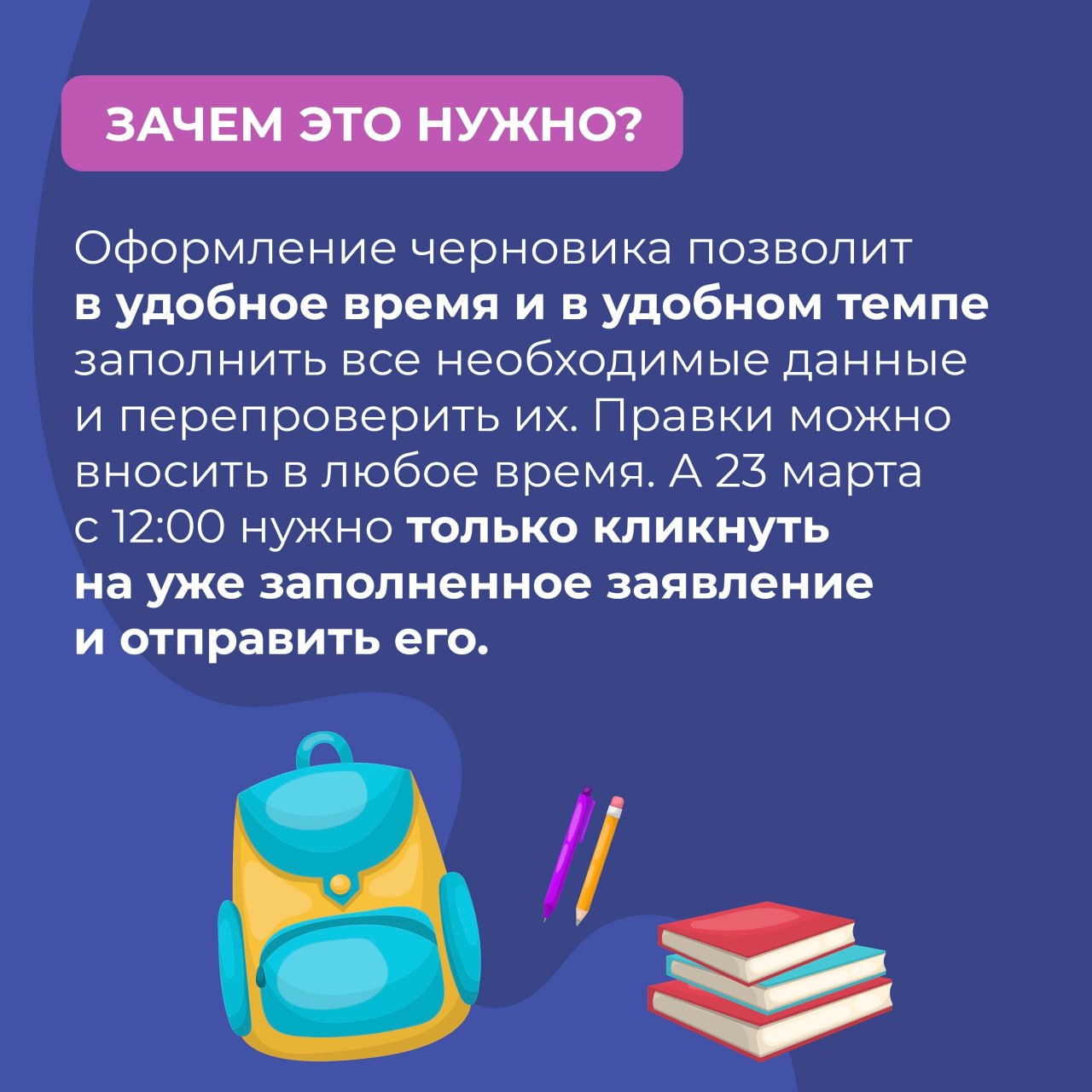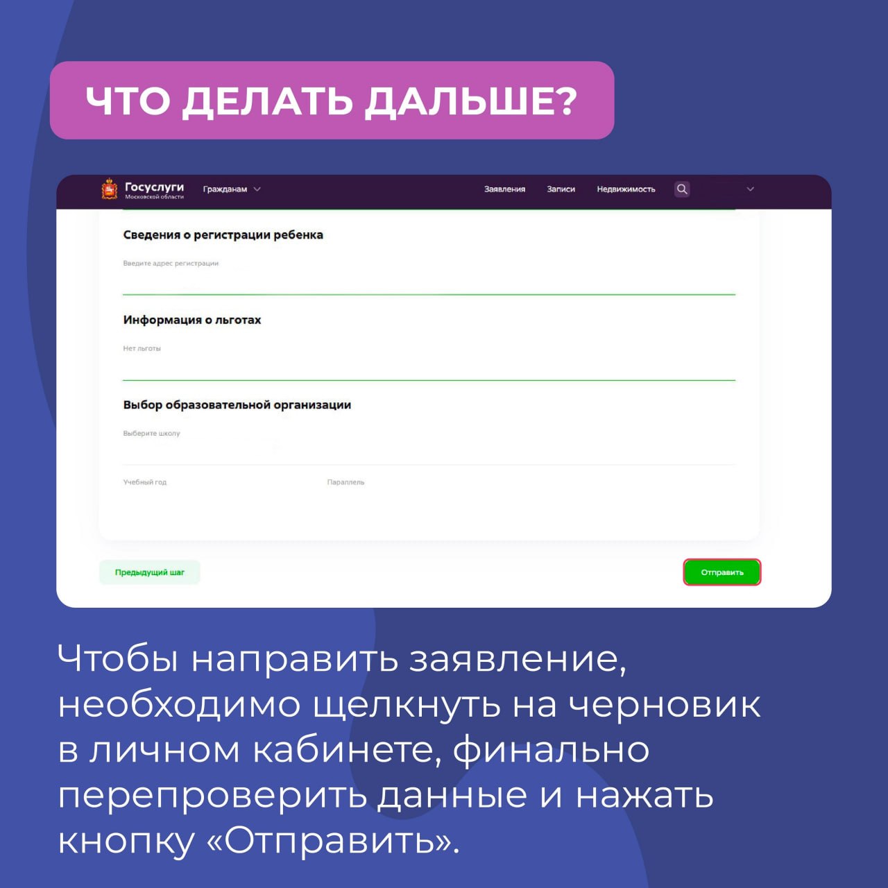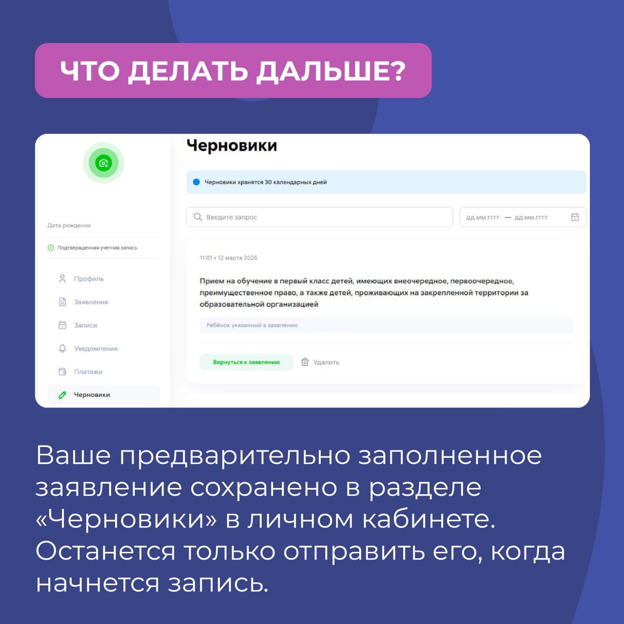 Теперь для записи в первый класс можно сначала подготовить черновик заявления