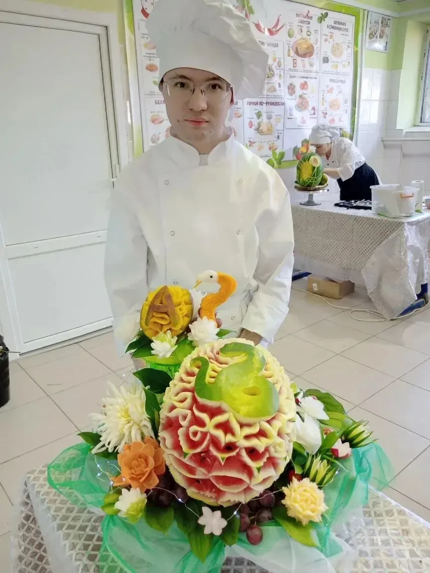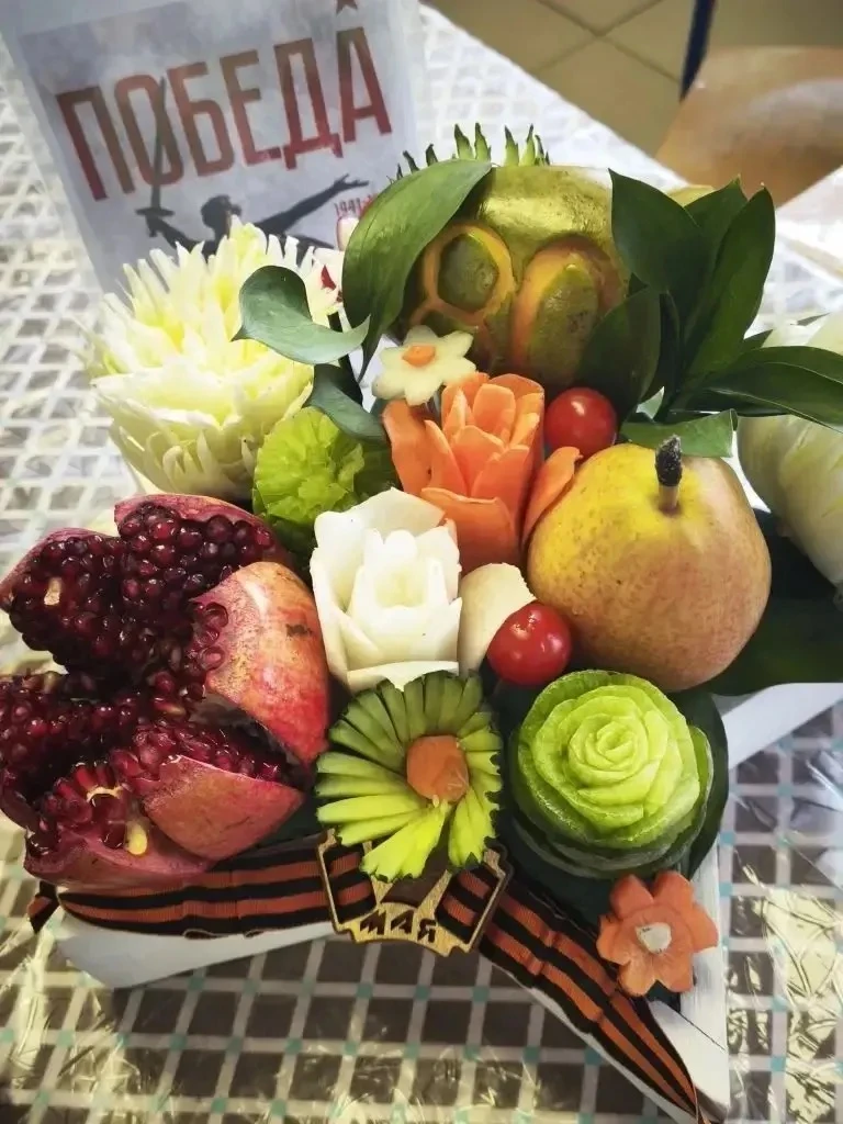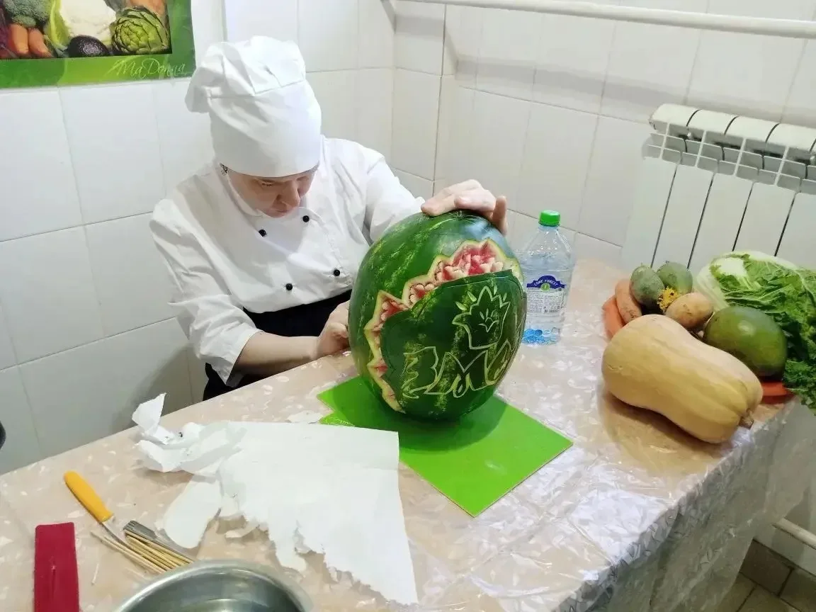 Конкурсанты выполняли три модуля: вырезание изделий из овощей и фруктов по заданной тематике, создание композиции на тему «Год зеленой древесной змеи» и демонстрацию комбинаторности в изделиях.