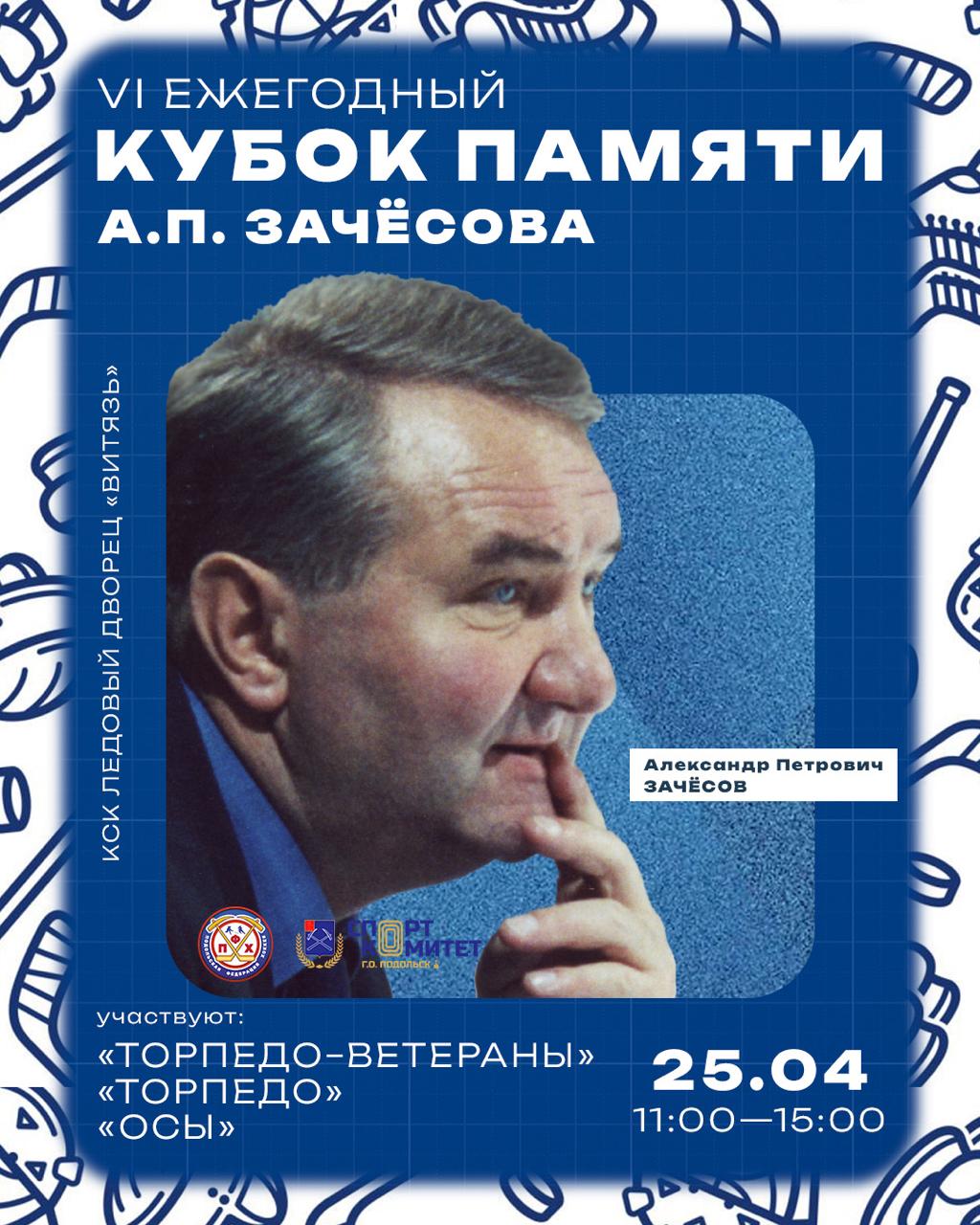 25 апреля на большой ледовой арене ЛД «Витязь» состоится шестой по счёту Кубок памяти Александра Зачёсова.