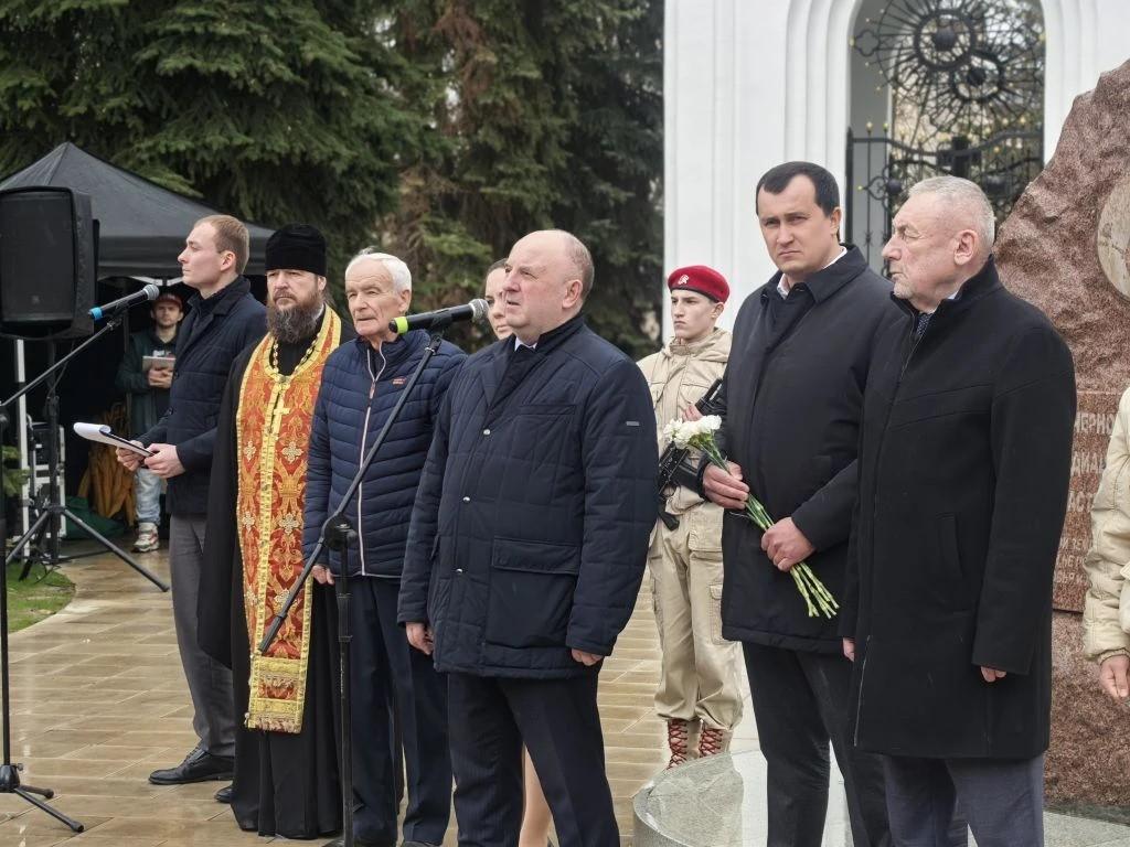 Память погибших почтили минутой молчания, к памятнику возложили цветы.