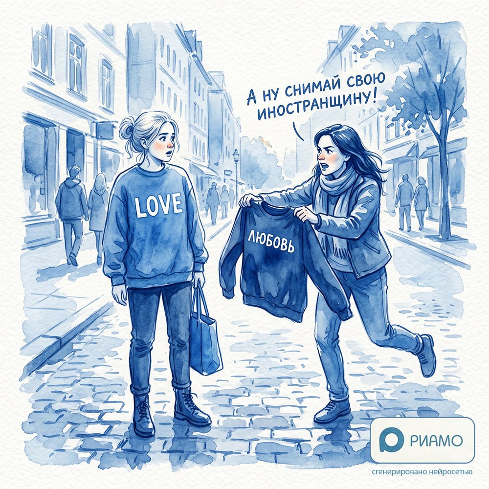 С 1 марта 2026 года в России вступил в силу закон (№168-ФЗ), ограничивающий использование иностранных слов в публичном пространстве, в том числе на вывесках и этикетках. Ношение одежды с иностранными надписи не запрещено напрямую, однако закон ограничивает размещение такой информации в рекламе и публичных сообщениях, включая описание товаров на витринах.